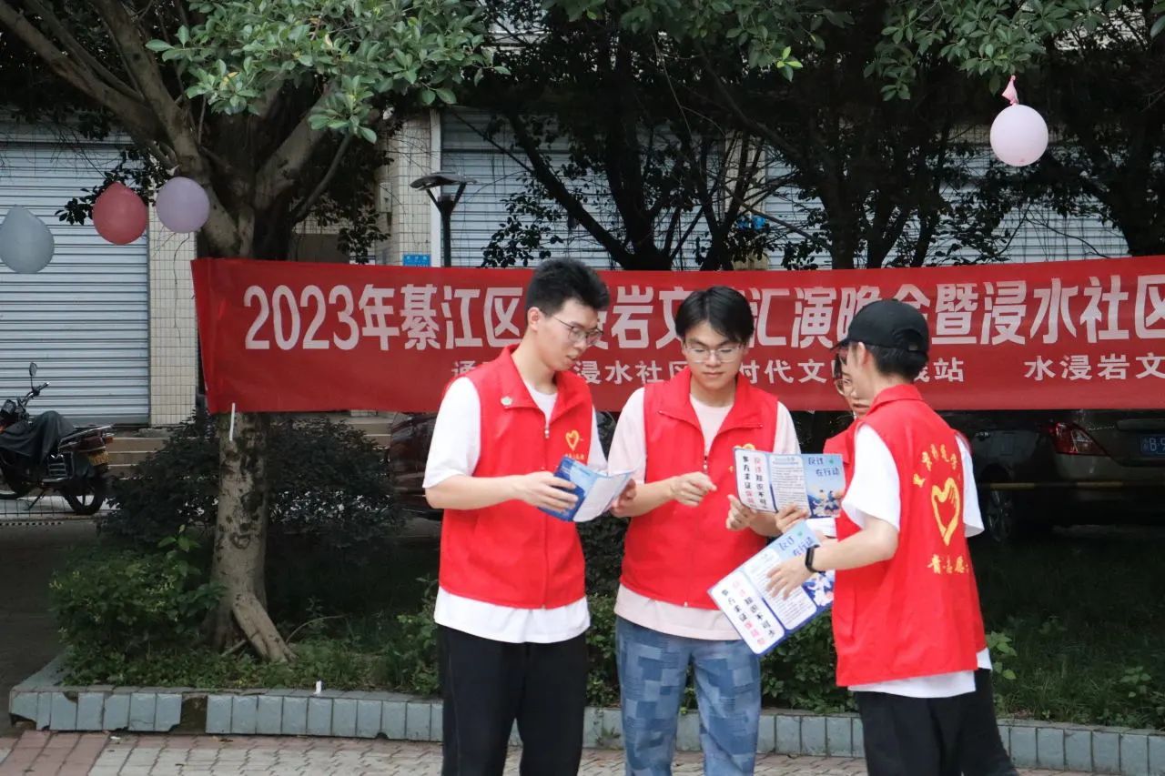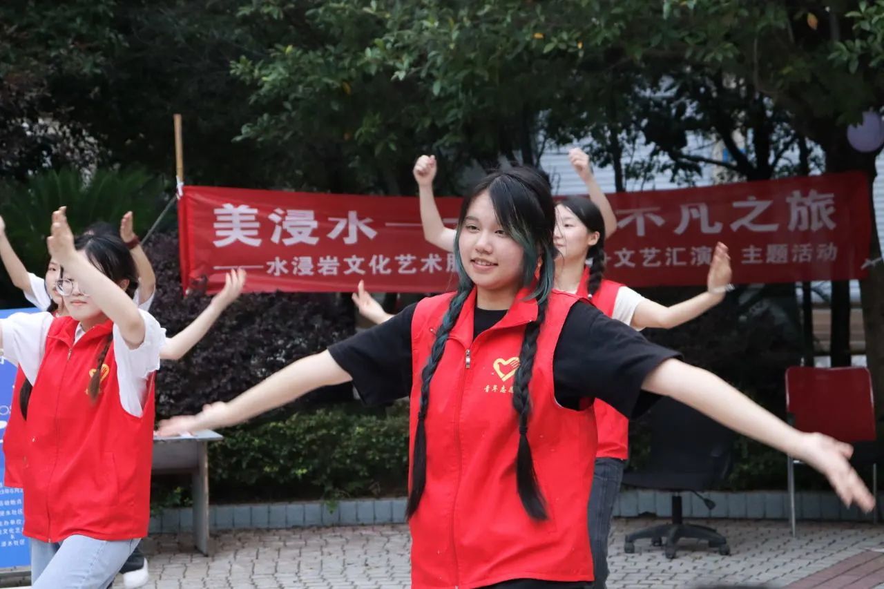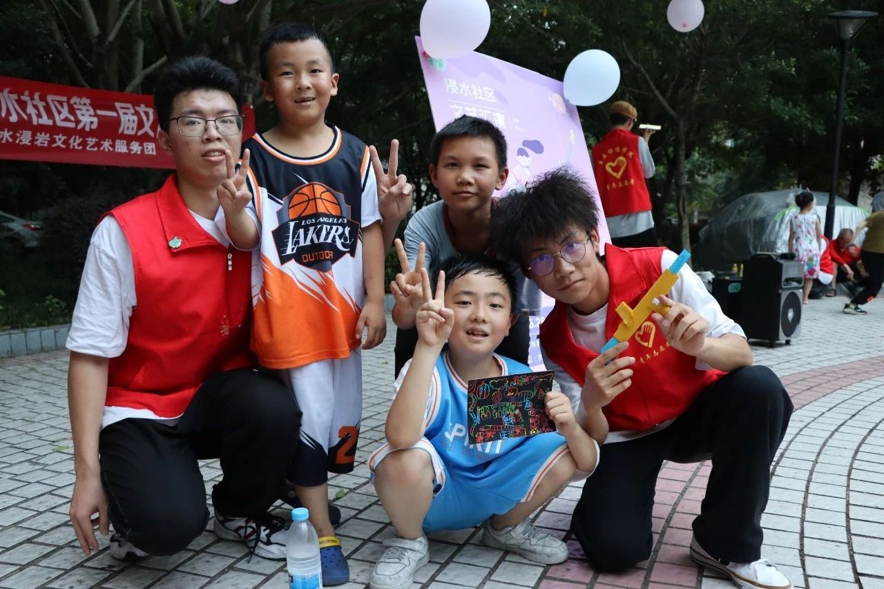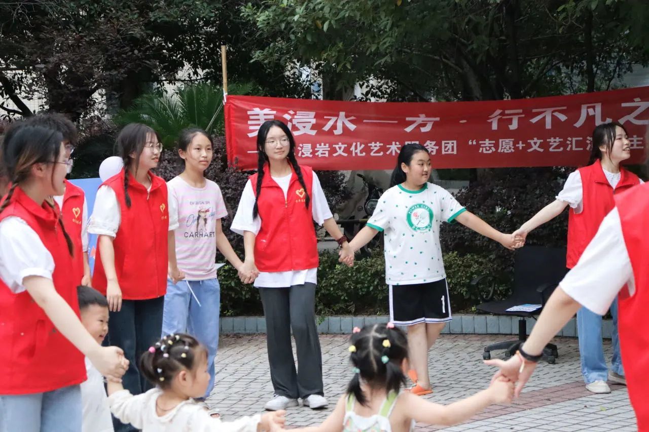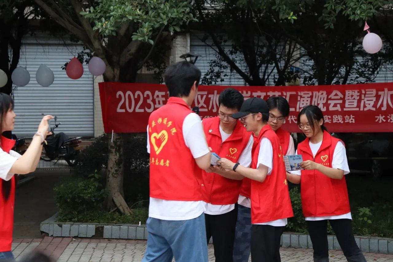 为充分展现新时代青年大学生良好的精神面貌,丰富社区文化生活,7月6日,水浸岩文化艺术服务团与浸水社区便民服务中心共同开展“志愿+文艺汇演”主题活动暨浸水社区第一届社区文化节,服务团成员和社区小朋友们一同参与表演,浸水社区李安连书记、水浸岩文化艺术服务团指导老师曾玉娇、潘锐与居民朋友们一起观看演出。本次文艺汇演,让校园艺术走进社区,为社区居民带来丰富多彩的艺术体验,也为水浸岩文化艺术服务团的“三下乡”之旅画上了圆满的句号。