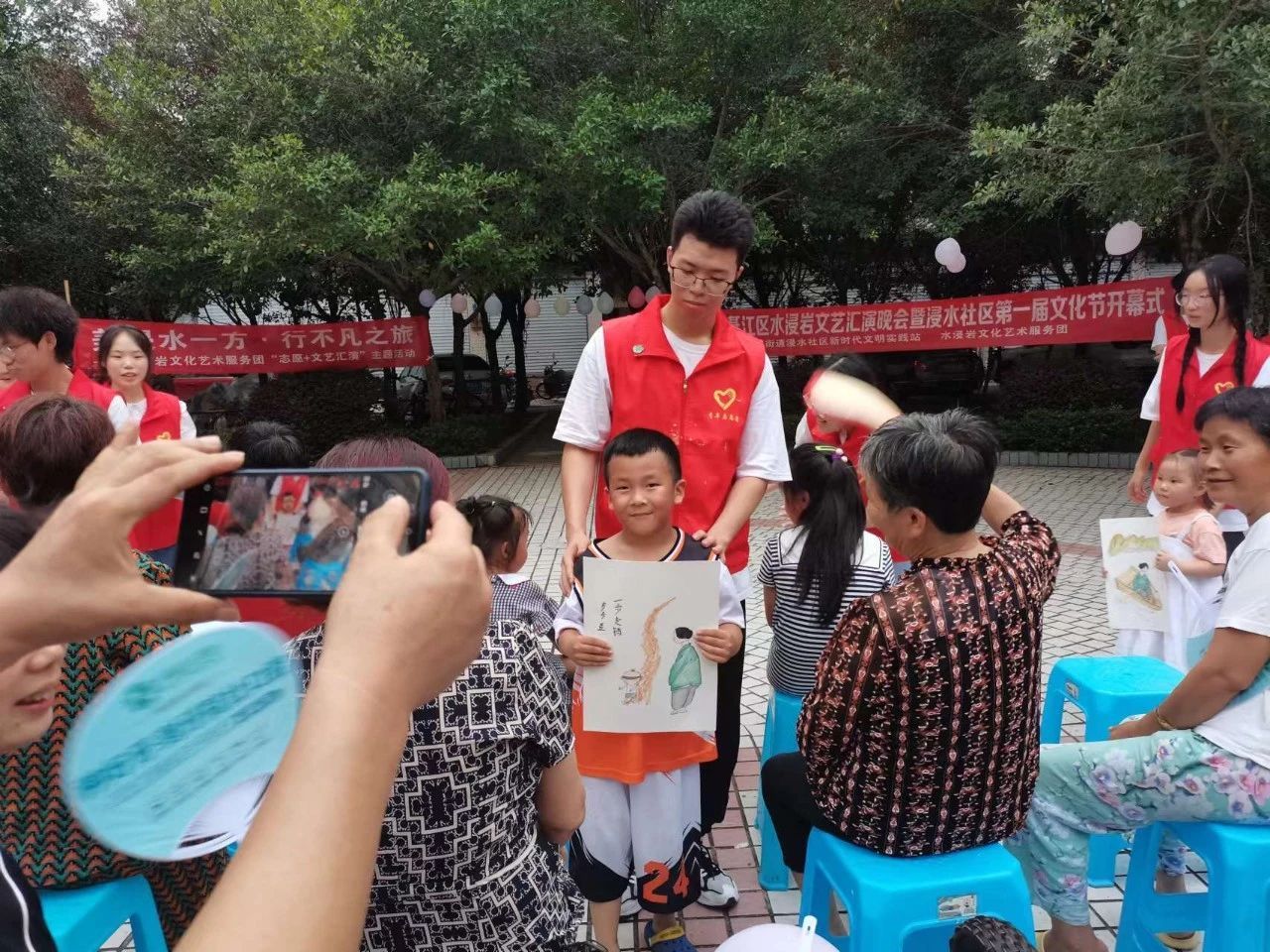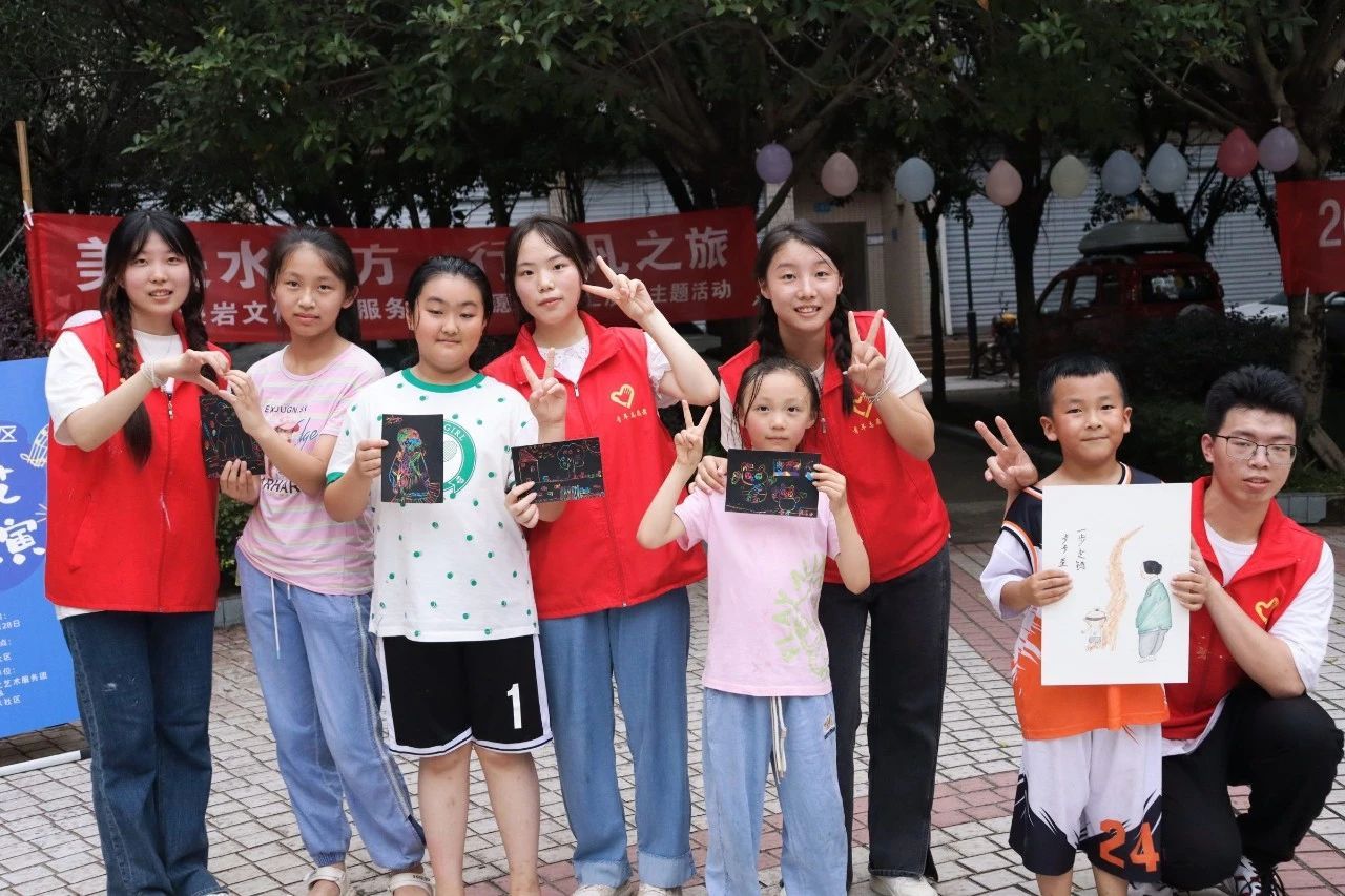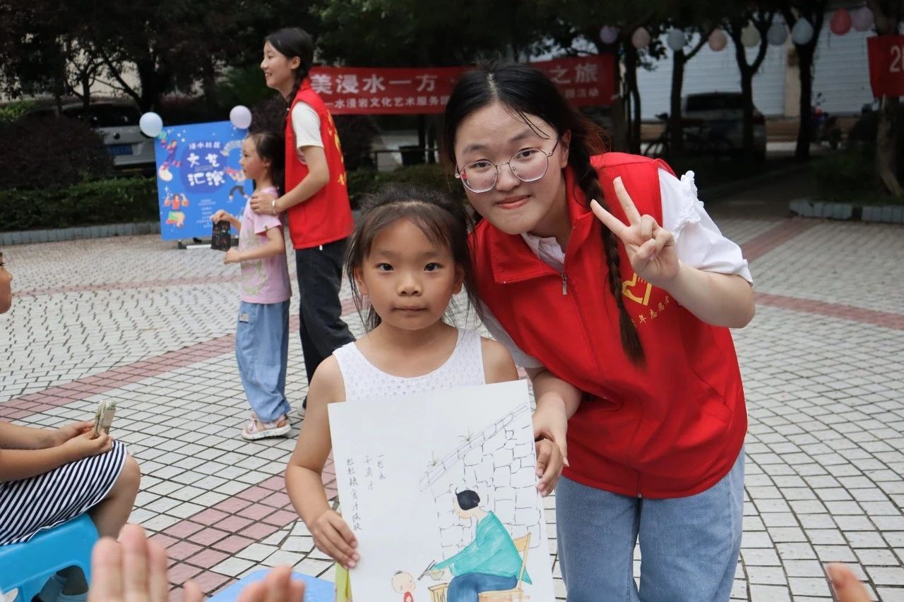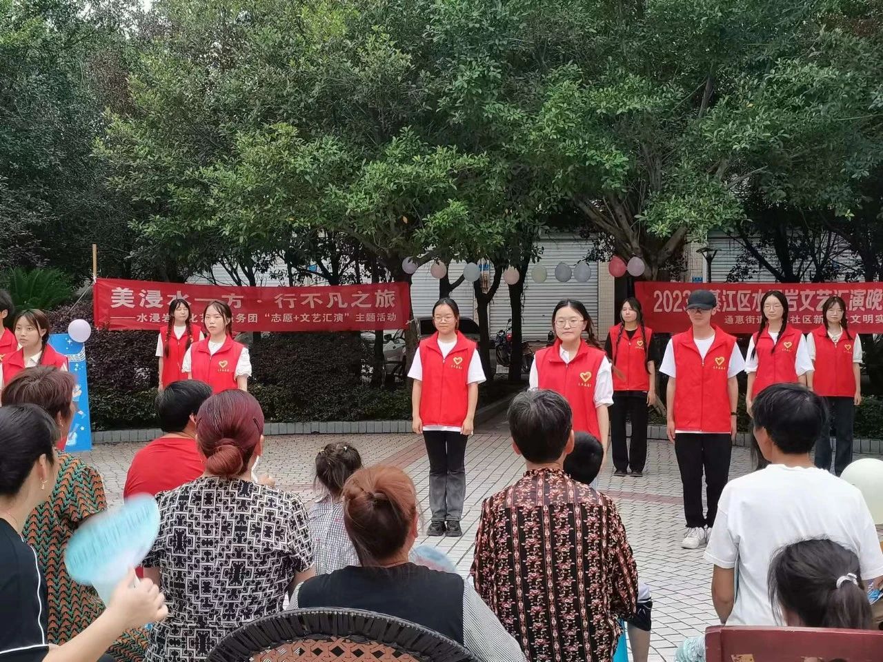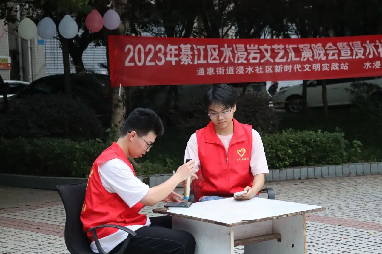 为充分展现新时代青年大学生良好的精神面貌,丰富社区文化生活,7月6日,水浸岩文化艺术服务团与浸水社区便民服务中心共同开展“志愿+文艺汇演”主题活动暨浸水社区第一届社区文化节,服务团成员和社区小朋友们一同参与表演,浸水社区李安连书记、水浸岩文化艺术服务团指导老师曾玉娇、潘锐与居民朋友们一起观看演出。本次文艺汇演,让校园艺术走进社区,为社区居民带来丰富多彩的艺术体验,也为水浸岩文化艺术服务团的“三下乡”之旅画上了圆满的句号。
