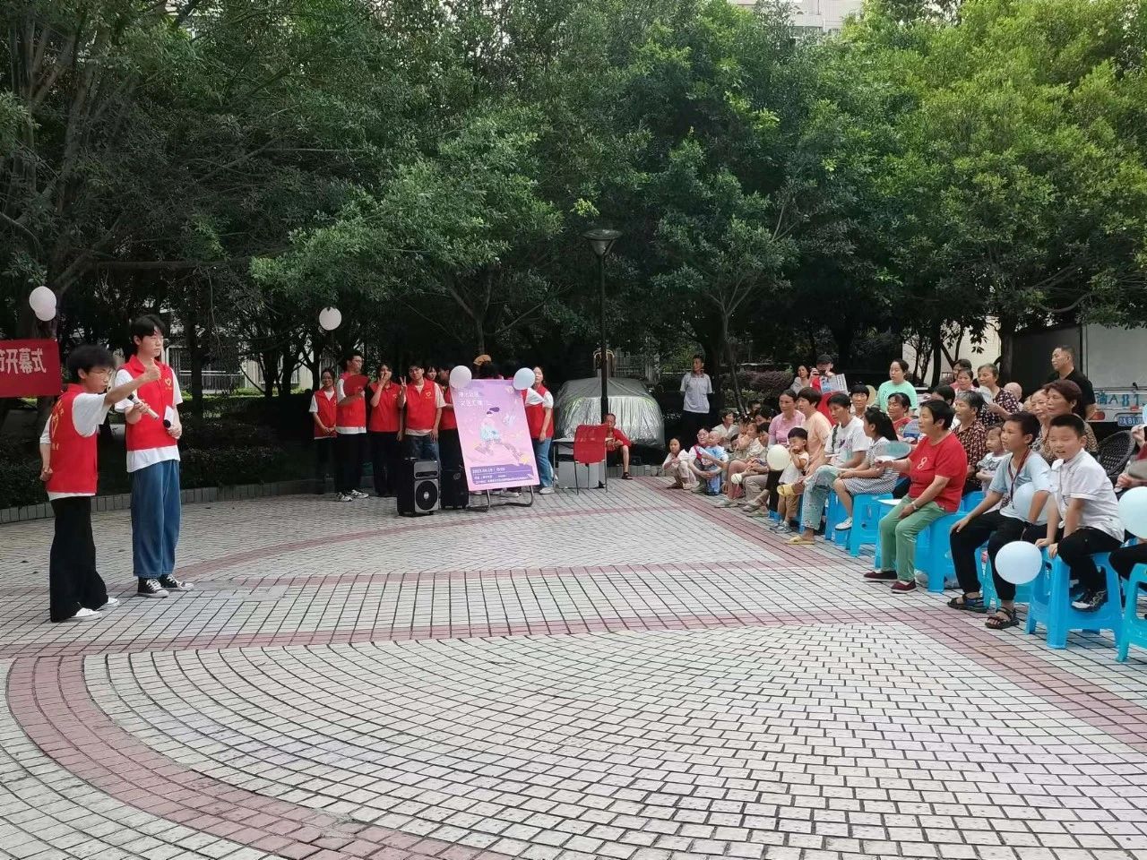 志愿者间为期一周的感动与拼搏,汗水与收获,都伴随着夕阳在广场舞中渐渐落下帷幕。此次文艺汇演暨社区第一届文化艺术节的顺利开展,不仅是将“三下乡”文化涂鸦、义务画像、读书小会、故事宣讲、多彩反诈、艺术课堂等活动无数个精彩的瞬间做了总结呈现,更是通过文艺节目演出、知识科普宣传,把理论政策、艺术普及、反诈技能及优秀的精神文化产品送到群众家门口,打通了宣传、教育、服务群众的“最后一公里”,满足了社区群众多样化、多层次精神文化需求。希望在水浸岩文化艺术服务团成员的共同努力,能够让艺术之花在社区居民的心中生根发芽,让志愿精神之树在社区茁长生长,孕育出一片生机盎然的文化艺术硕果。