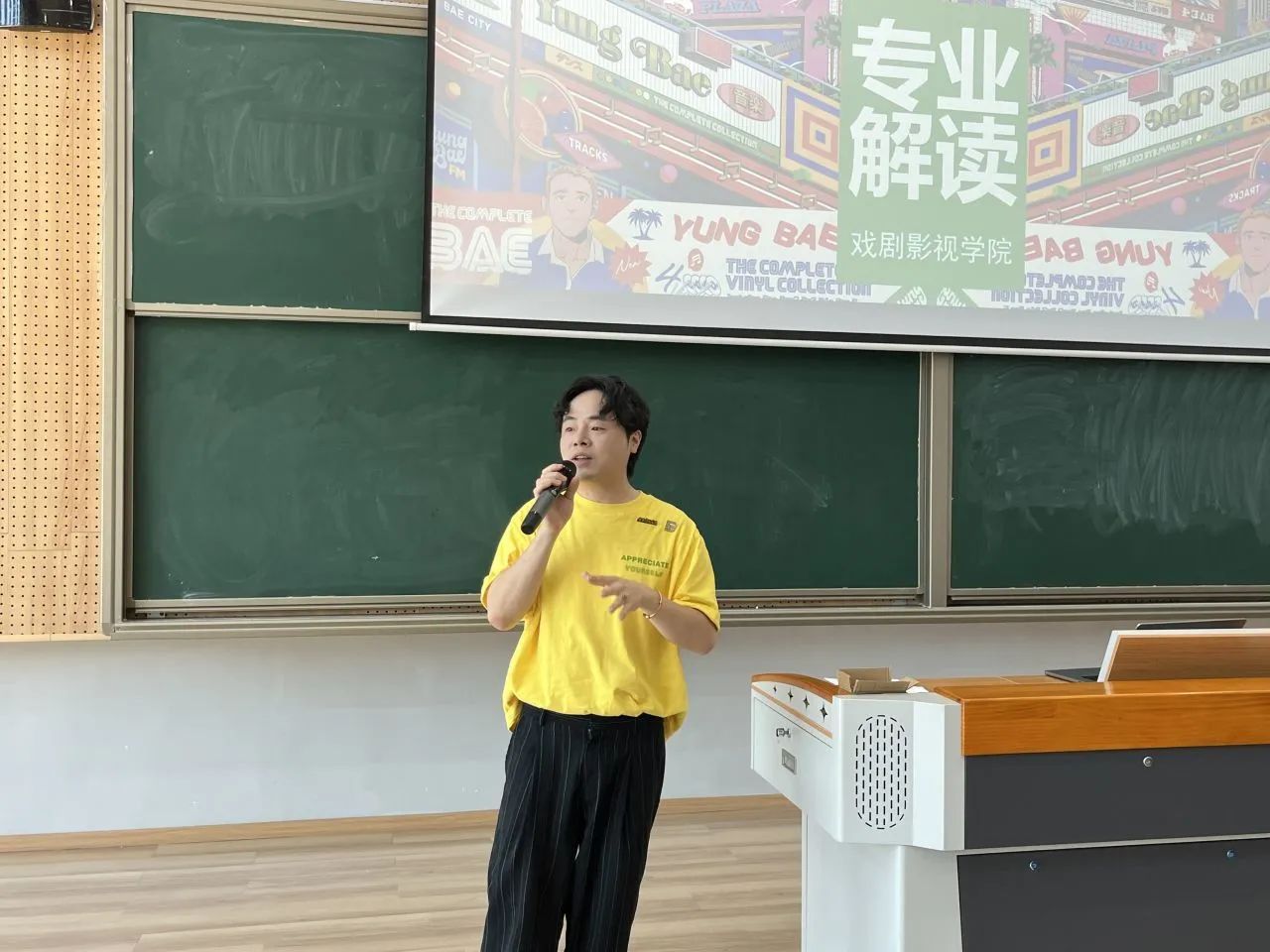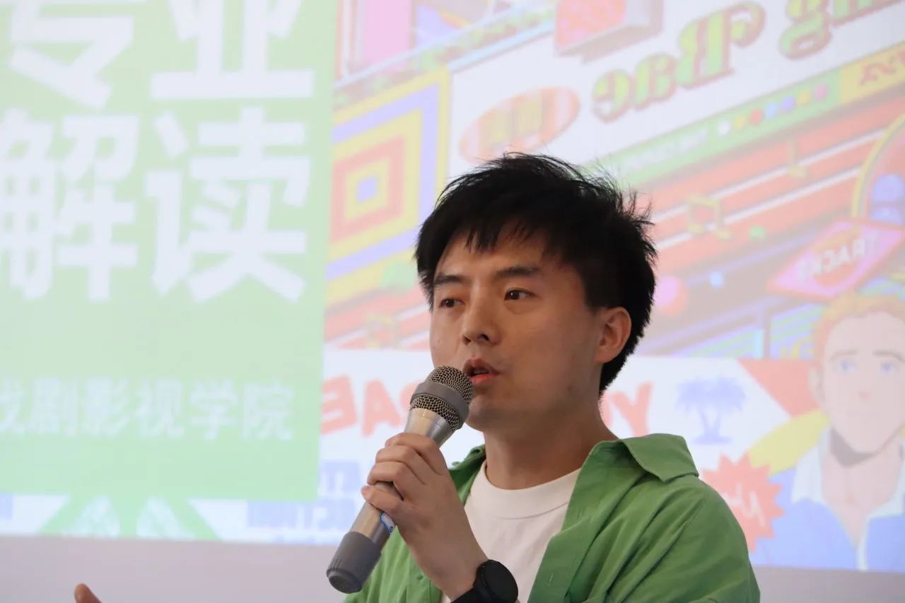 随后杨帆老师根据戏影专业的培养方案,借助自己对于“通识教育”“联想创新”“大胆评论”的学习思路分享,让一众学生对于自己的专业有了更清晰的认知与更明确的方向。