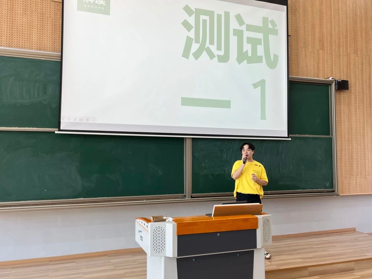 动画专业见面会中,李如冰老师通过一个小小的测试开场,为新戏娃们生动的解读了学院的教学模式——互融互补的多样化混合式教学模式,而实践课程则是以日常教学融入学科竞赛、模拟项目、以赛促进、以实践促教学,达到培养创新型、应用型人才的目标。