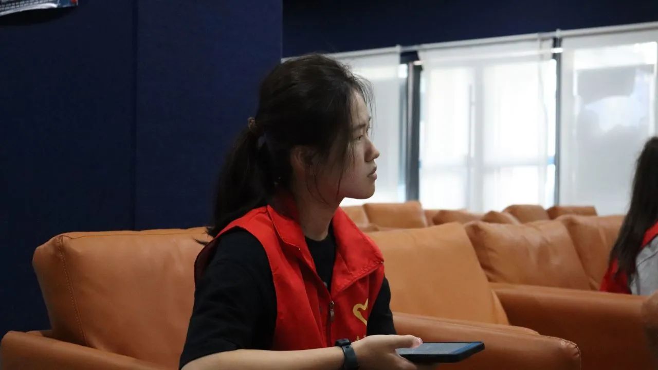 张悦学姐从志愿服务技能和志愿服务精神出发,向大家强调了志愿服务期间的行为要求,例如女生不能穿着裙子,不能化浓妆,需要将头发扎起,男生不能穿短裤,带首饰项链,需要正确穿着红马甲等要求,以更好地进行志愿服务活动。