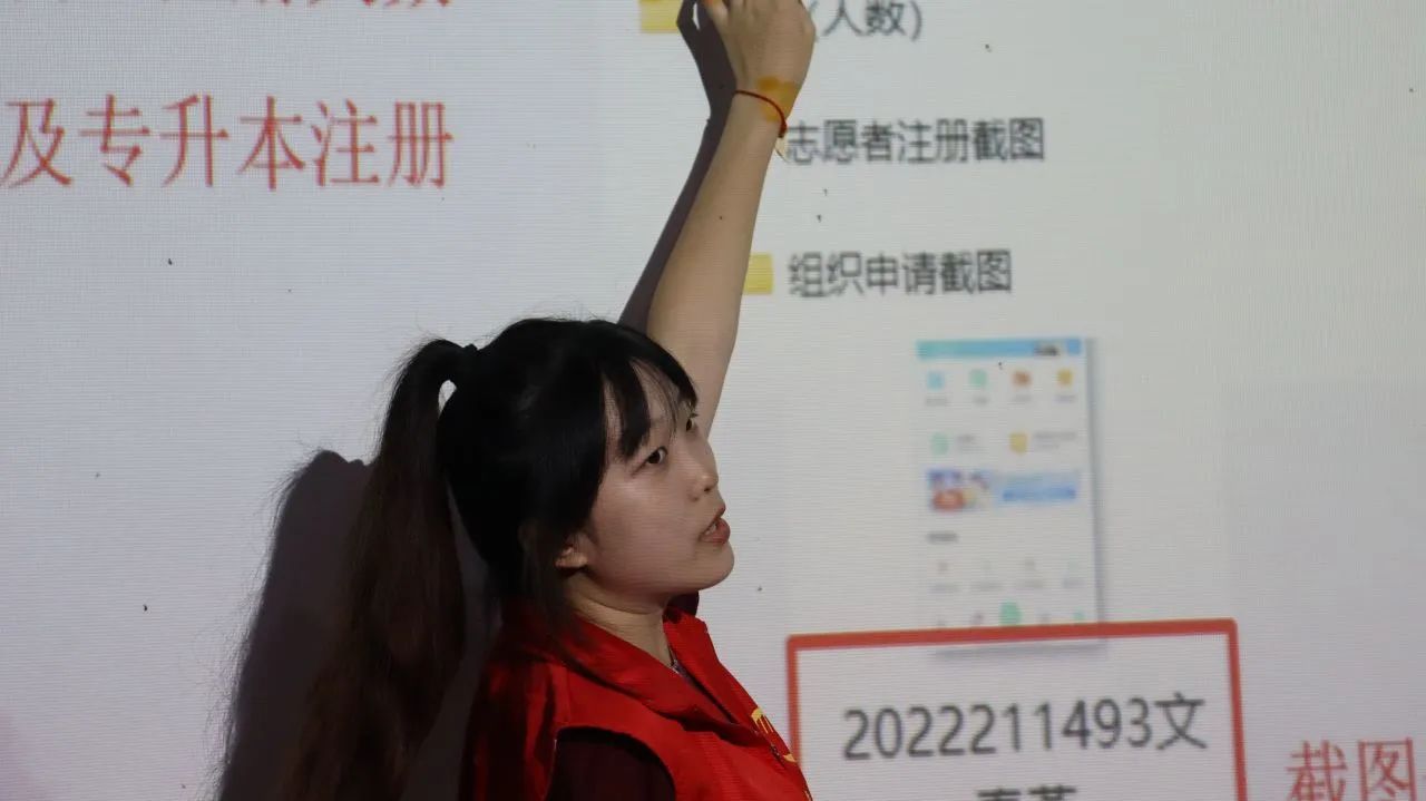 同时,张悦学姐通过自身经历讲解,向大家强调了志愿者服务技能培训、行为规范、志愿活动规范及志愿者有关注册方面的相关事宜,帮助各班志愿委员尽快掌握志愿服务必备技能,以便后期提高工作质量与效率,更深层次了解志愿服务意识,培养志愿服务精神,明晰志愿服务要求。