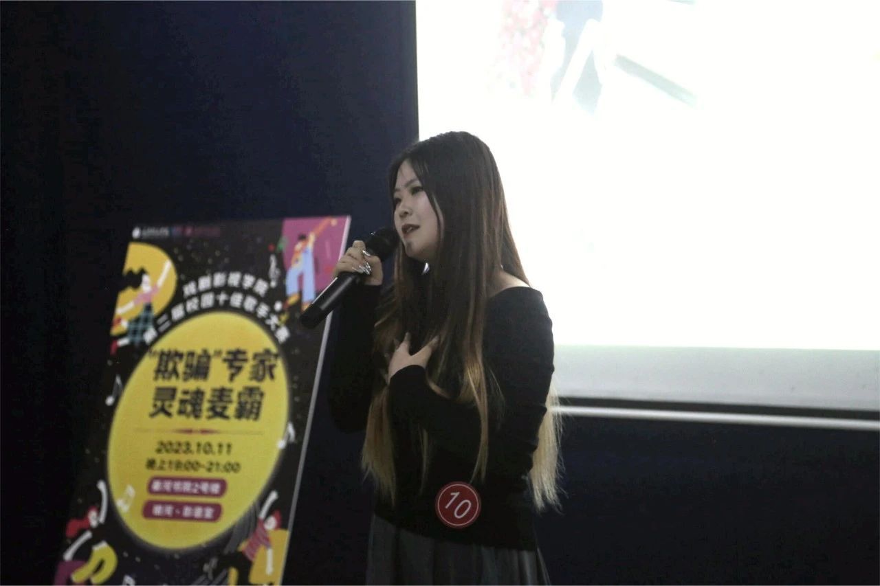 伴随着两位主持人慷慨激昂的破冰开场,比赛正式拉开序幕。本次大赛分为两轮,第一轮为淘汰赛,选手围绕“欺骗”趣味主题,以爱情欺骗、友情欺骗、生活欺骗等为主要内容选取歌曲进行比拼。第二轮为排名赛,选手将角逐本次大赛的前三名。排名赛拿到晋级直通卡的选手,将代表戏剧影视学院出战,在校级十佳歌手的赛场上一展歌喉。首轮19名选手依次登台演唱曲目,选手们各显神通,周龙军同学的《香水有毒》的爱情欺骗、刘媛媛同学的《被驯服的象》的生活欺骗等,各种不同的歌曲风格也让评委老师与观众们眼前一亮。选手们所演唱的歌曲历经了数日的精心准备,今天得以用最饱满的感情最自信的姿态以及最美妙的歌喉向观众呈现,曲毕台下掌声欢呼不断,选手们为现场所有人带来了一场不同凡响的视听盛宴。