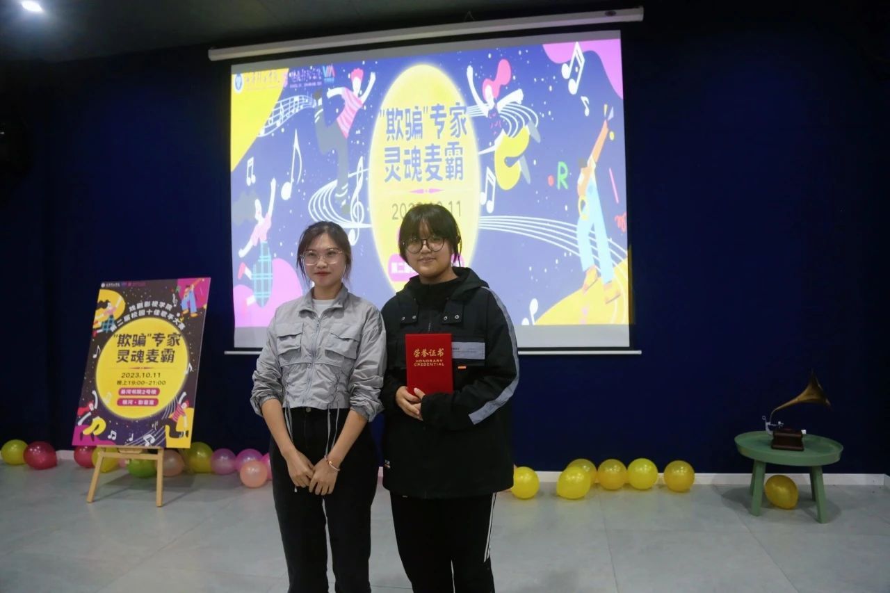 两轮演唱环节全部结束后,选手美妙的歌喉赢得观众阵阵掌声。廖炳屹老师对于选手的表现进行了点评,同时就歌曲演唱技巧方面做出了指导,潘锐老师用诙谐幽默的语气,肯定了各位的表演,并且就本次大赛的主题“欺骗”进行了解释,将反诈宣传与歌手大赛相结合,爱情欺骗、友情欺骗,希望戏娃们在生活中面对诸如此类的“欺骗”“诈骗”时能够一笑而过,一唱而过泰然自如的去应对。
