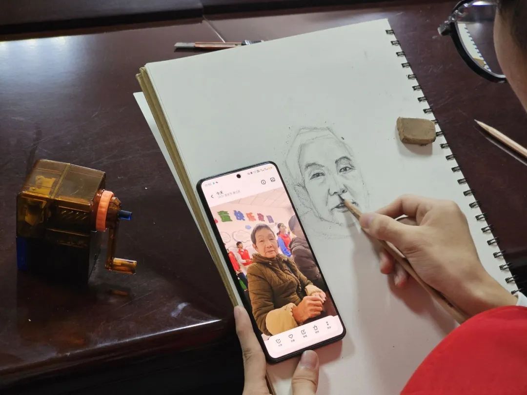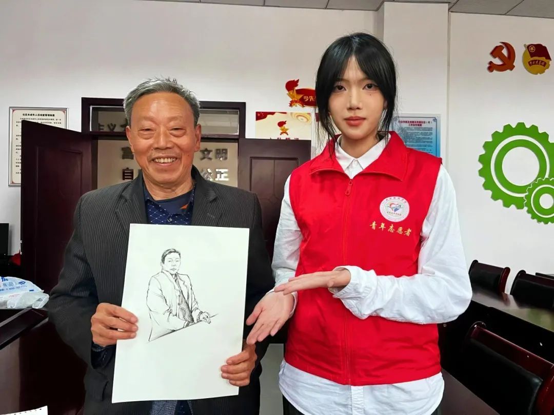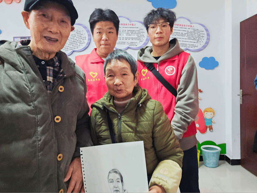 最后,志愿者陪同老人们话家常,了解他们的生活作息、喜好与习惯等,老人们非常亲切,滔滔不绝,交谈融洽,喜爱下象棋的老人们也与志愿者在棋盘中也竞争得如火如荼。随后,志愿者们也将为老人画的肖像作品赠予他们,老人们表达了对志愿者真挚的感谢和赞扬。每幅肖像画如同一个温暖的怀抱,一份情感的寄托,增加了老人们的获得感和幸福感。