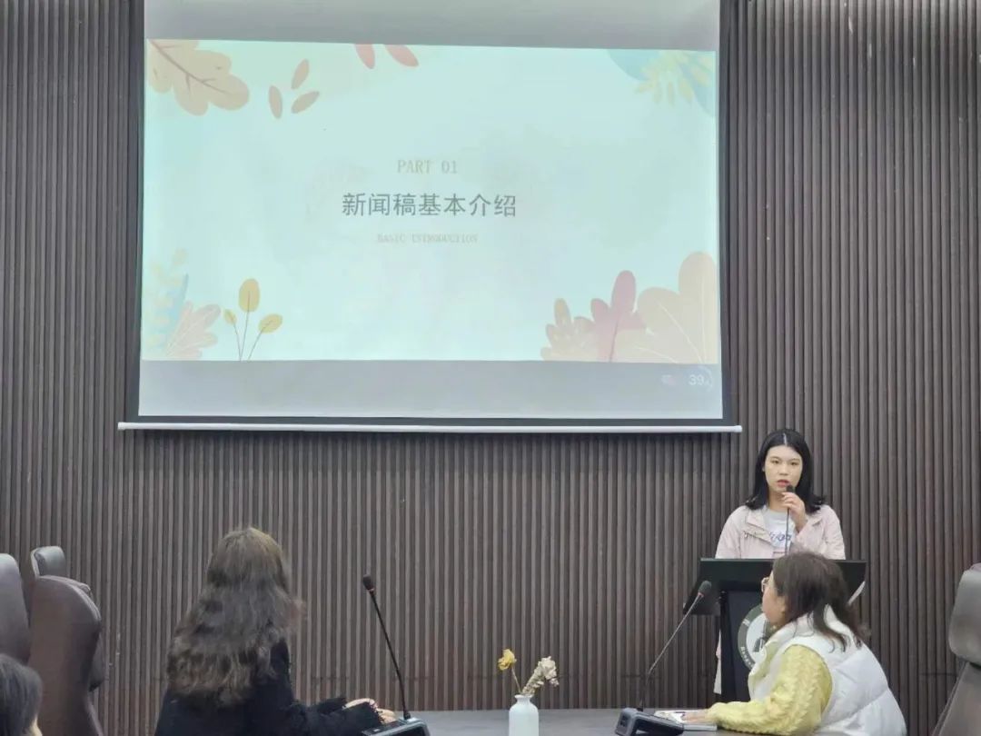 本次活动分为四个环节。首先,黎师雨学姐为我们进行新闻稿的基本要求讲解和写作经验分享。从新闻稿的概念、新闻稿格式字体、基本内容框架等方面,给同学们传授她的撰稿方法和技巧。同学们认真记录,反思自己在撰稿时的不足。