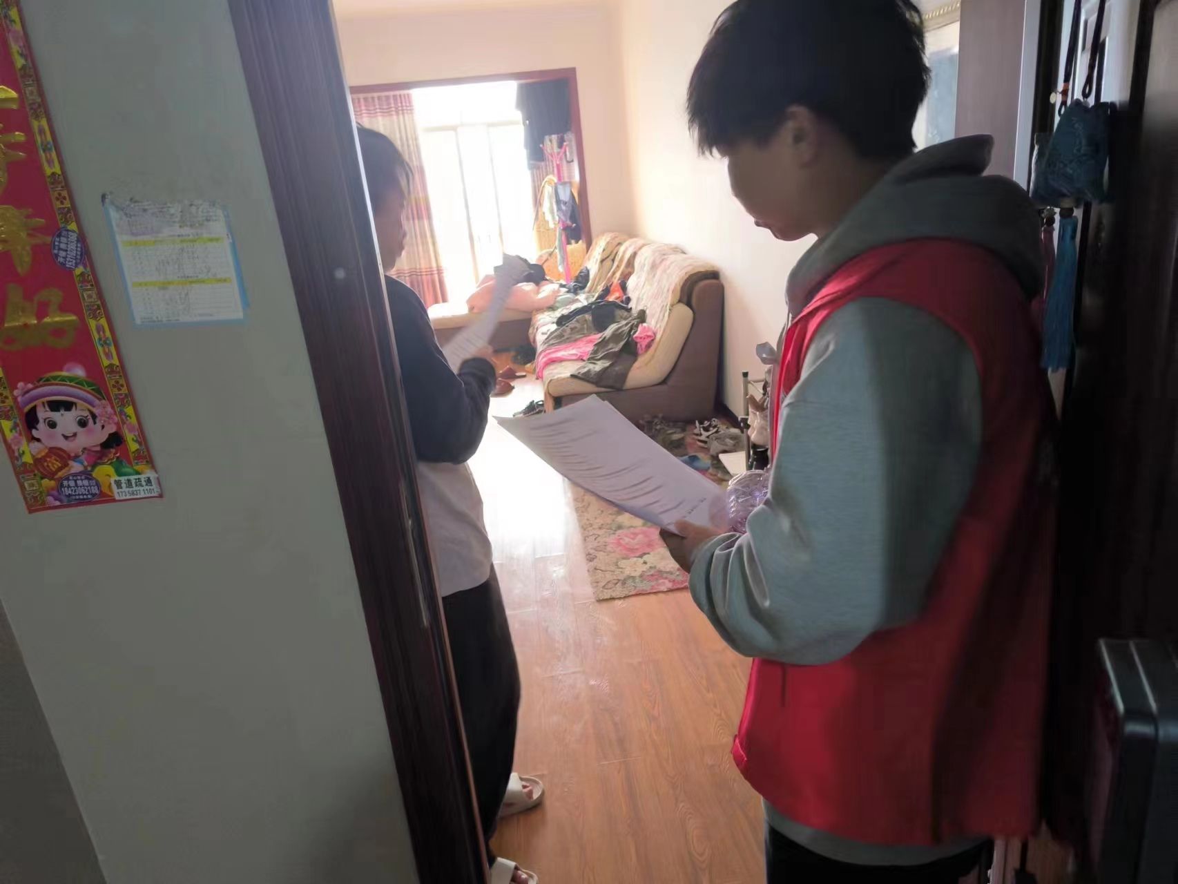 在开活动开始前,两个班的志愿者准时到小区门口集合,与社区的负责人一起研究讨论开展工作的具体行动:我们将志愿者分为了3人1组每组负责向那部分的住户利用调查表的形式进行宣传,负责人还强调了我们本次活动所要宣传的应知应会。在活动中,志愿者们不止宣传了綦江正在创建文明城区的应知应会,还宣传了关于未成年保护发和防诈骗等。