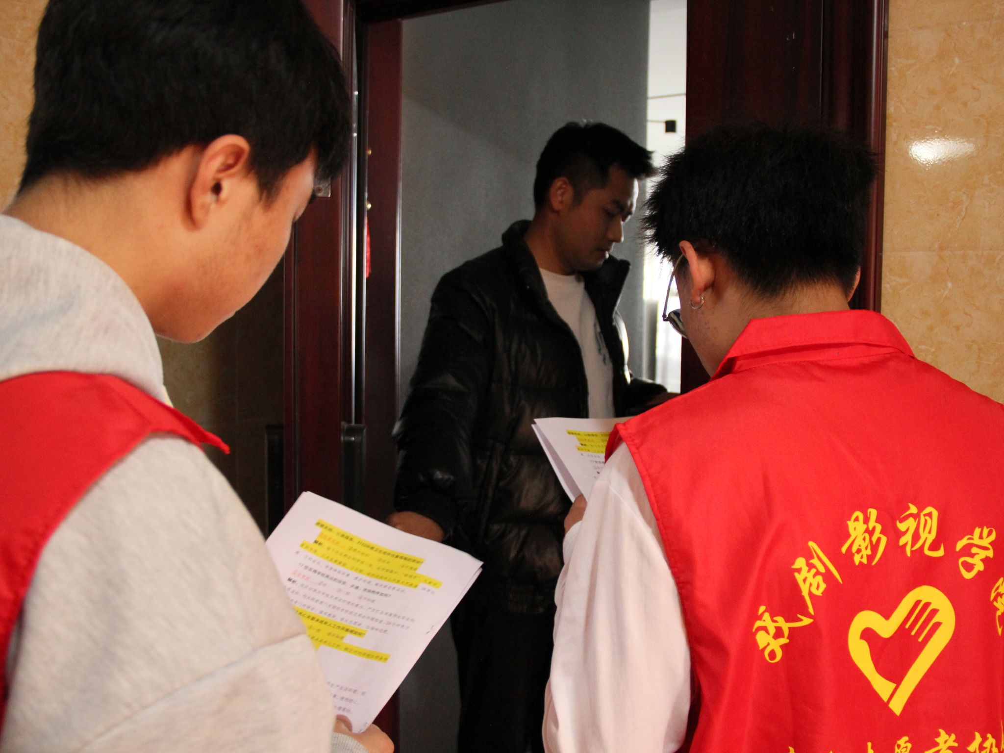 活动开始,班长向宇航与社区管理人交接本次活动内容,而后,同学们分为若干小组,分工合作。有的同学负责看表单、门牌号,有同学负责提问讲解,还有的同学负责记录拍照的,还有的同学则对居民进行了关于城市文化的深度讲解和交流,居民也是耐心倾听,活动得以顺利进行。经过大家的努力,同学们基本完成了各个楼层的走访活动,最后居民对同学们的志愿服务给予了很高的评价,表示随时欢迎同学们的再次到来。