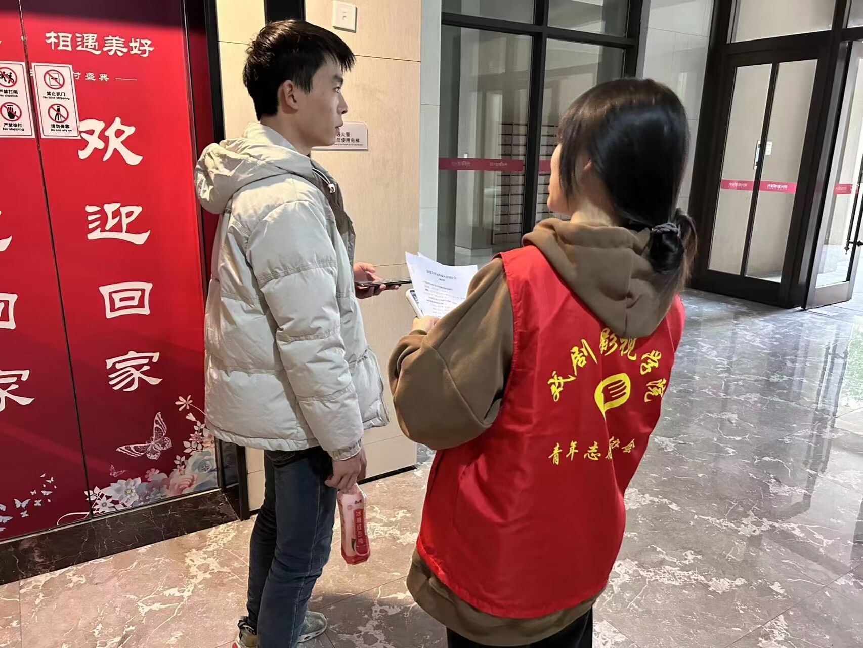 传承志愿精神,弘扬中华民族优良传统志愿服务是中华民族优良传统的重要体现,我们要传承和弘扬这一伟大精神,将其融入日常生活和学习中。用实际行动践行社会主义核心价值观,为构建和谐社会贡献自己的一份力量。为了号召广大移通学子努力培育和践行的志愿奉献在基层,加强自身的社会认知能力、社会责任感、社会素养。同时更好的共建文明的城区,戏剧影视学院2023级动画6班全体同学于2023年11月24日开展了一场以“志愿奉献在基层,青春强国向复兴”为主题的社区调研的志愿之行,该活动旨在深入社区开展访谈调研深入基层,倾听民生助力社区发展。