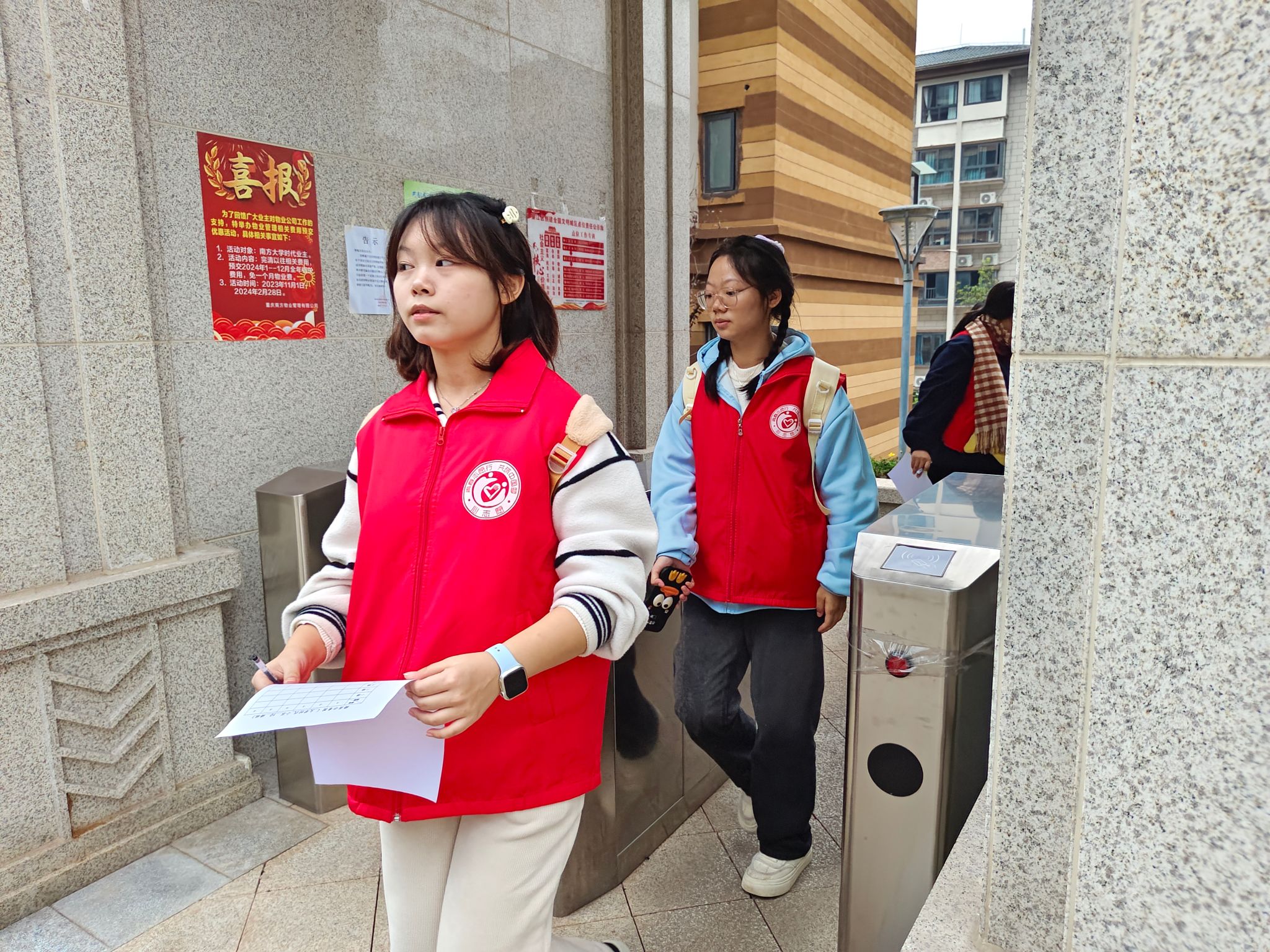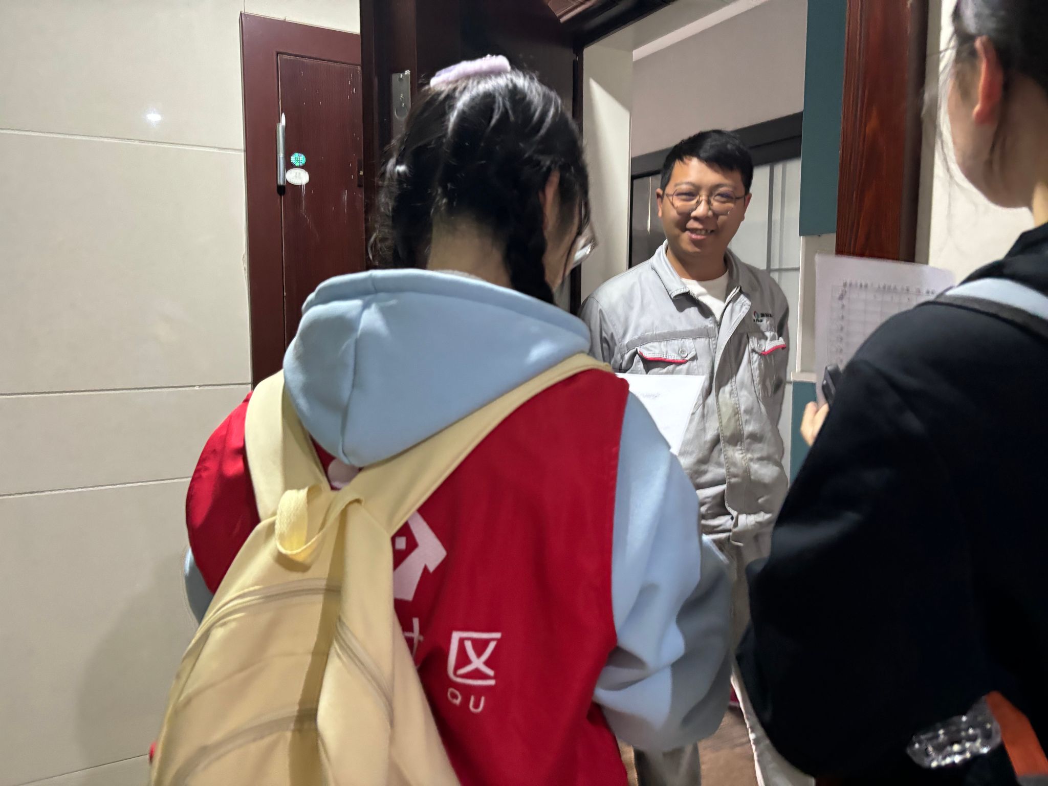 接着,同学们以四人为单位走进楼栋进行宣讲活动。通过细心的宣讲向居民们讲解了什么是创建全国文明城区,创建全国文明城区的内容以及创建全国文明的好处,并征集了居民们对该项目的看法,在同学们的热情讲解和积极沟通中,居民们都表示对该项目支持,其中一位居民也表示到“创建全国文明城区利人利己,也能感受到社区对提升城区环境做出的努力。”同时同学们也对宣讲过程中发生的各种情况进行了相应的记录,方便后续社区进行调研活动。