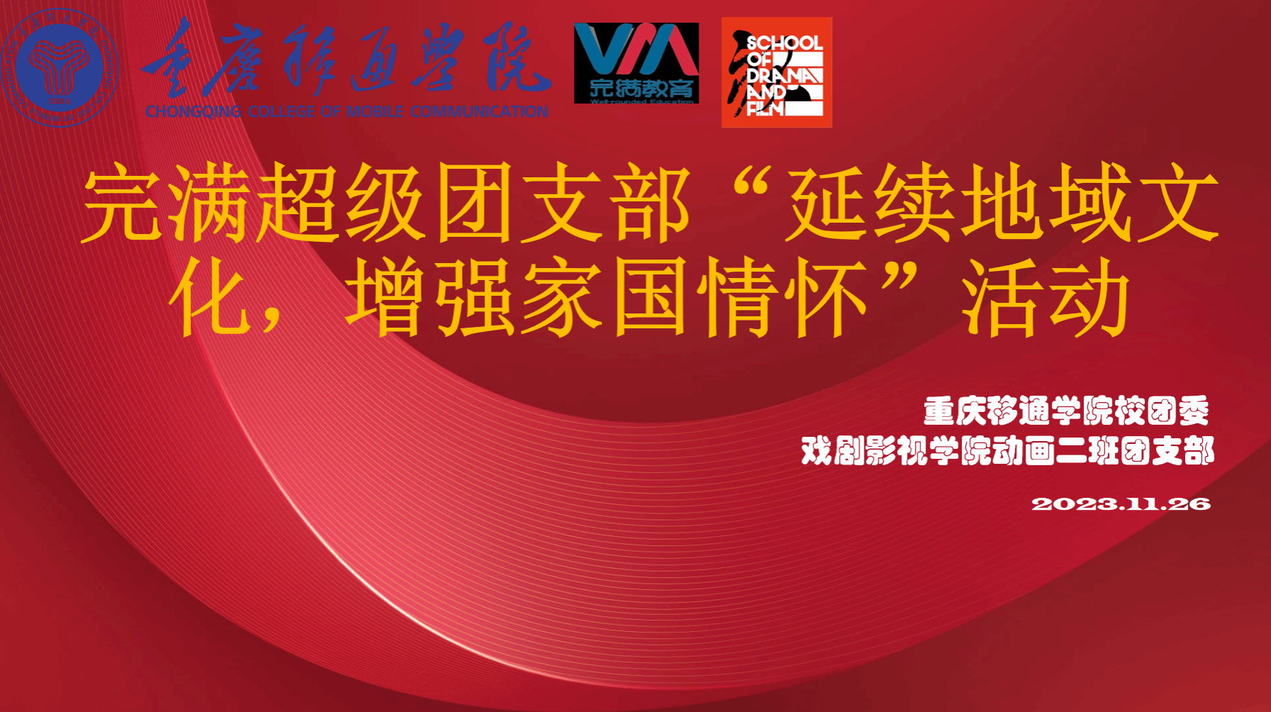 为加强班级团支部的自身建设、建立特色团支部,提升团支部对地域文化的了解,2023级动画02团支部响应完满超级团支部口令号召,通过了解地域民族服装、增强文化意识、共享地域文化、民族文化之美,激发同学们学习传统民族文化知识的热情,宣传具东方神韵和中华民族独特文化。特此于11月26日晚上20:30在古剑书院白虹·半间闲室顺利举办以“延续地域文化·增强家国情怀”为主题的班团活动。