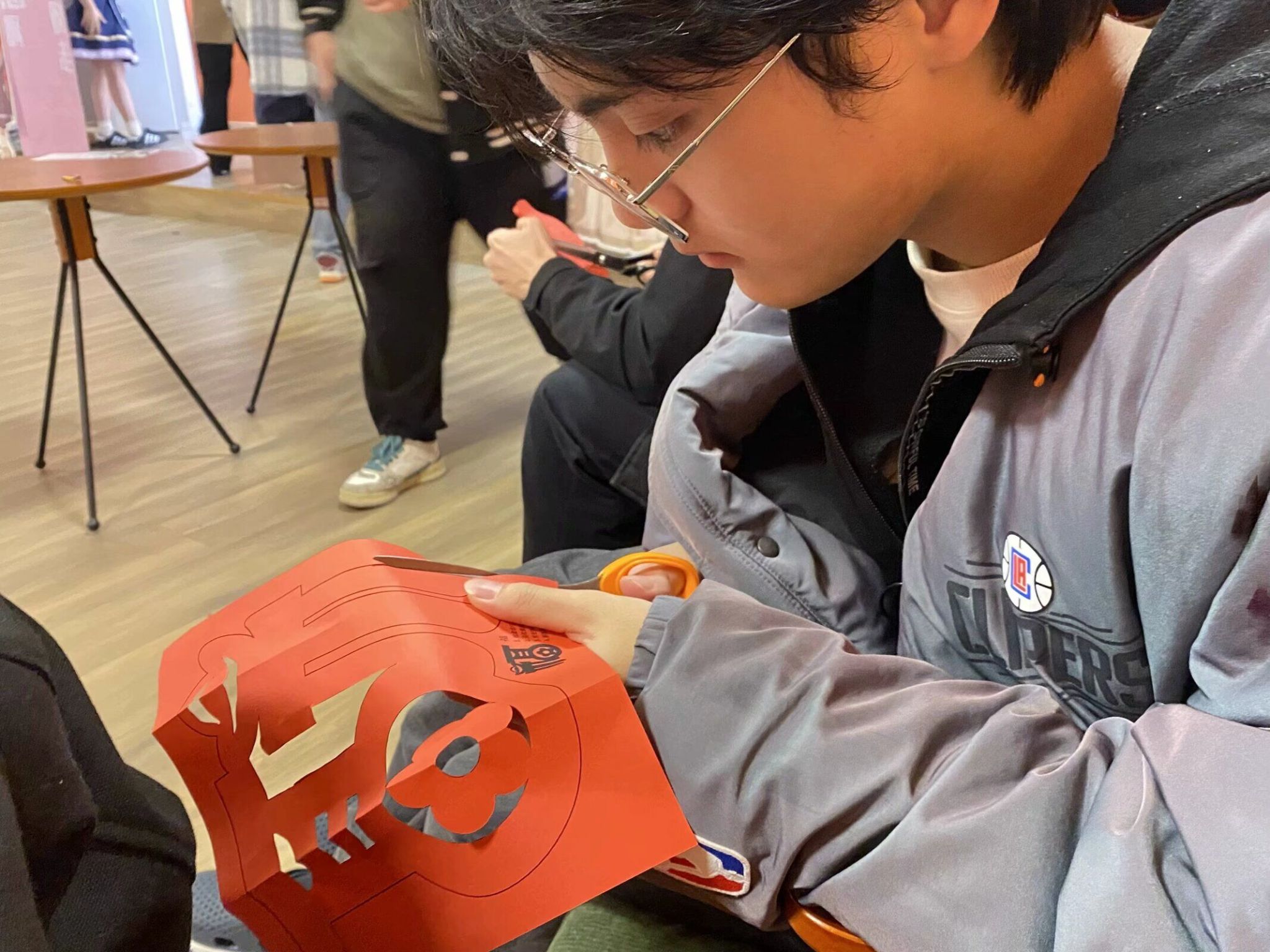 剪纸是一种传统的民间艺术形式,起源于中国的古代文明。为更好的宣传剪纸这一种非物质文化遗产,带领同学亲身体验剪纸的过程与其中乐趣。活动开始,通过剪纸比赛,同学们分为男女两队进行自由组合,比赛要求在规定时间内完成,在比赛过程中同学们运用了剪、刻、撕等不同的工艺手法,展现着他们的奇思妙想,各团队配合默契,同学们在剪纸过程中不断展现自我,比赛现场氛围浓厚,同时也将剪纸艺术的风采展现的淋漓尽致。