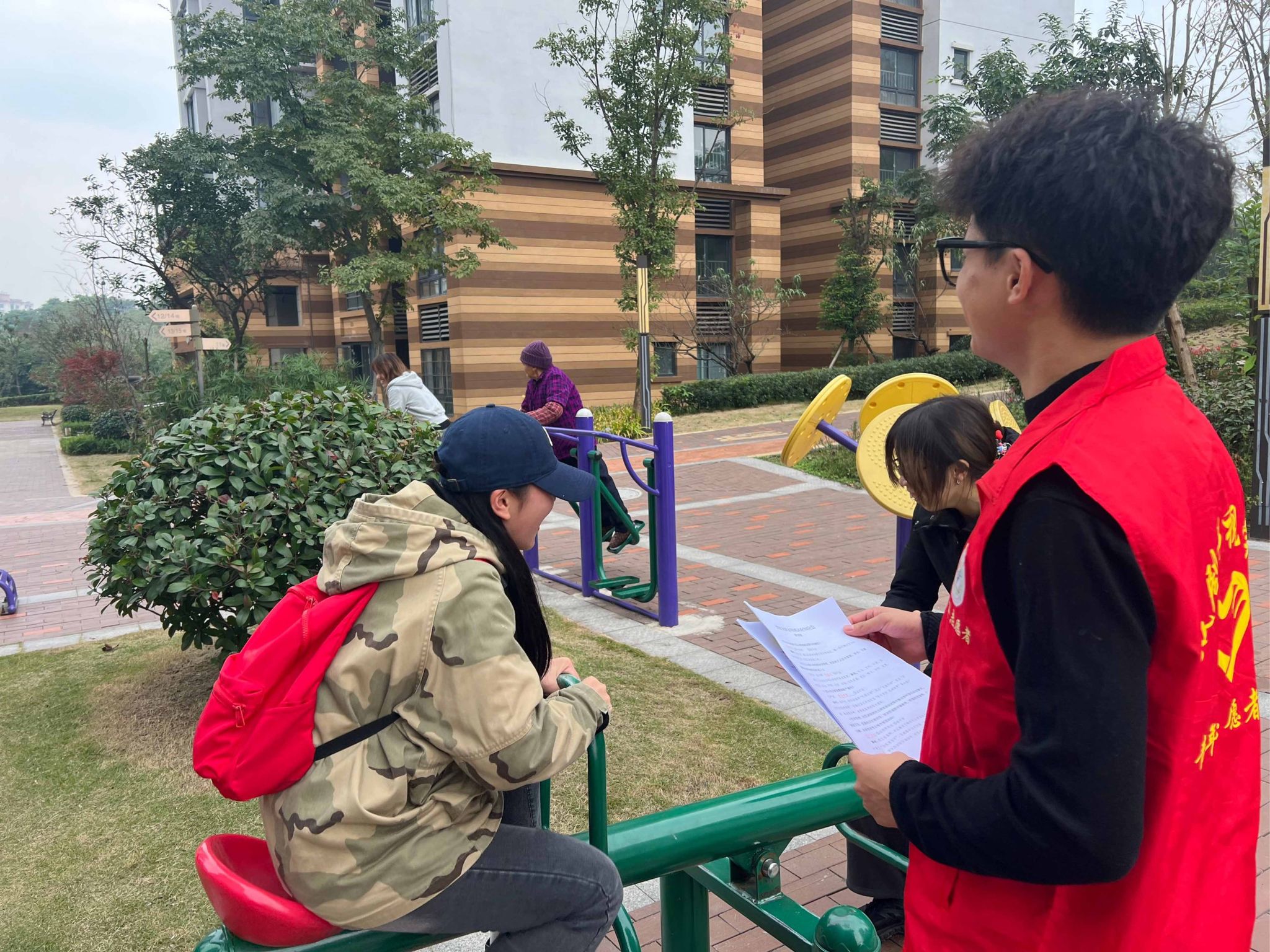 到达社区后,为了确保活动的顺利开展,社区负责人向各位同学阐述了本次志愿服务活动的相关内容、目标以及文明城区创建的重要性,让同学们对于本次志愿服务活动内容有了更深入的了解。在领取宣传单和问卷表后,同学们积极展开行动,挨家挨户的上门讲解。