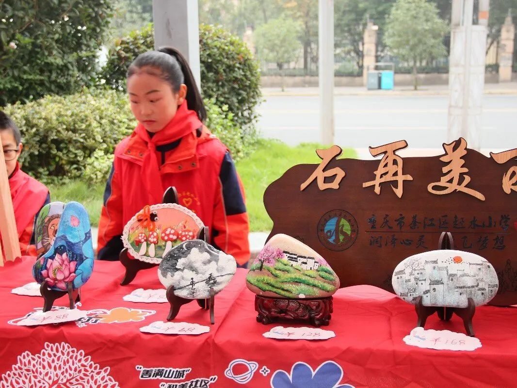 此次活动分为三个部分,分别是乡村少年宫学生作品的义卖、爱心闲置物品义卖和“公益马拉松”活动。小朋友们所学习的不仅只是书本上的知识,还有课下的实践,通过这些活动更使小朋友们感受到志愿与公益的美好。义卖区展示了许多乡村学校少年宫学生作品,作品类型多样化,包括书法、绘画、石刻、蜡染、摄影作品等。