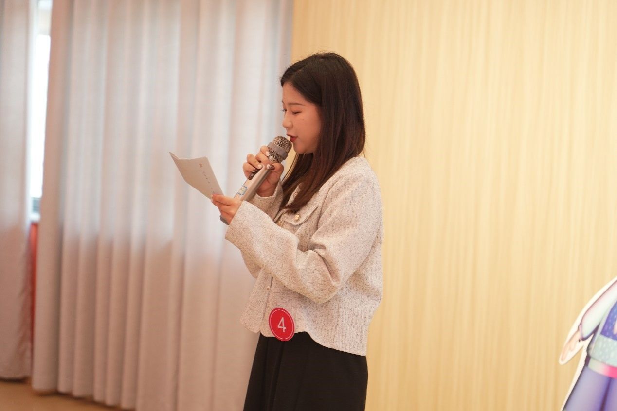 经过紧张刺激的三轮比赛,选手们以出色的表现展示了他们的主持才华和个性魅力。在比赛即将落下帷幕之际,主持人邀请曾钰娇老师对此次比赛做出了整体的点评。曾钰娇老师首先对所有参赛选手表示了肯定和赞赏。同时,也提出了一些宝贵的建议。她希望选手们能够更加注重语言的准确性和规范性,避免出现口误和语病。此外,她还强调了主持人的台风和气质对于节目效果的重要性,希望选手们能够在仪态、表情等方面加以提升。最后,曾老师对本次大赛的成功举办表示了祝贺。