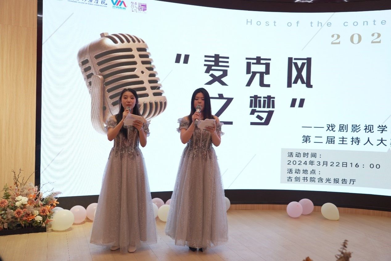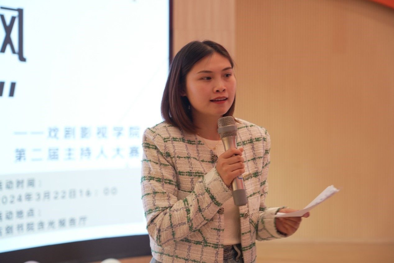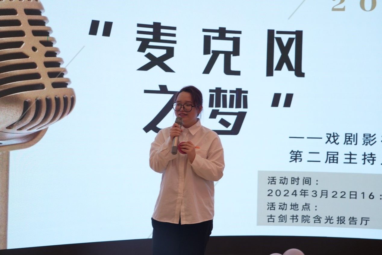 “等闲识得东风面,万紫千红总是春”,在这个春意盎然的季节里,戏剧影视学院为了激发同学们对主持艺术的热爱,推动主持艺术的创新发展,于本学期的3月22日下午16:00至18:00在古剑书院含光报告厅隆重举行了“麦克风之梦”——戏剧影视学院第二届主持人大赛。此次大赛,旨在为广大学子提供一个展示自我、挑战自我的平台,让他们能够近距离地感受主持的魅力,锻炼自己的语言表达和舞台表现力。莅临本次大赛的评委有戏剧影视学院学工办主任曾玉娇老师、学院志愿板块指导老师李梦雪老师、学院社团板块兼艺术板块指导老师廖炳屹老师,此外还有40名观众同学的到来。