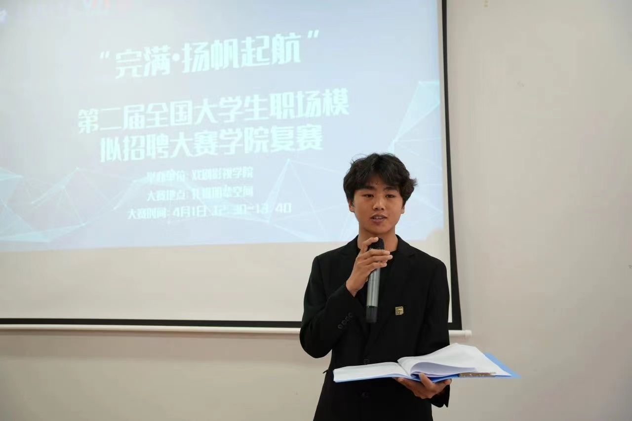 为帮助同学们更好地了解职场,明确个人发展方向,提升个人求职能力,掌握求职技巧,3月20日-4月1日,戏剧影视学院就创助理团特组织举办“完满起航·职面未来”——“完满•扬帆起航”第二届全国大学生职场模拟招聘戏剧影视学院复赛。