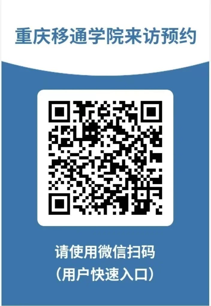 导航“重庆移通学院綦江校区”(重庆市綦江区通惠街道登瀛大道36号),车辆进校可扫描下方二维码,来访人须填写“学生姓名+辅导员姓名”,到访人填写“王芳”。