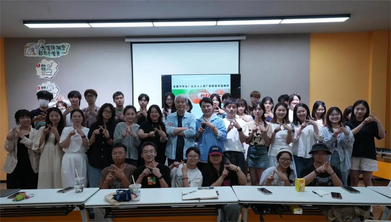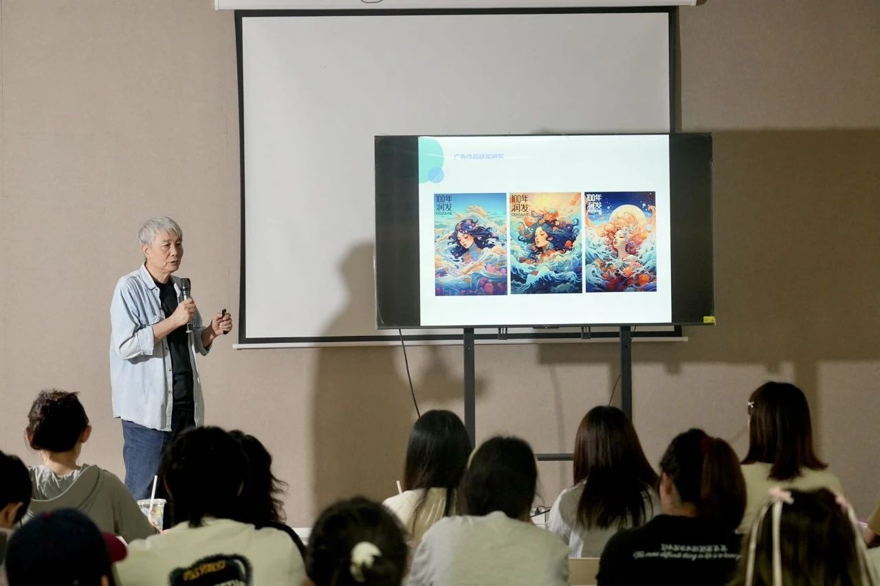 讲座尾声,袁教授鼓励学生们深入挖掘内心的创意源泉,将每一份灵感与热情融入创作的每一个细节之中,以更加广阔的视野和深刻的理解,去探索广告艺术创意的无限可能。并预祝每一位参赛者都能在第16届全国大学生广告艺术大赛中斩获佳绩,用实力证明自己,用创意点亮未来。