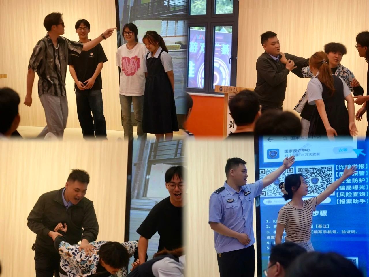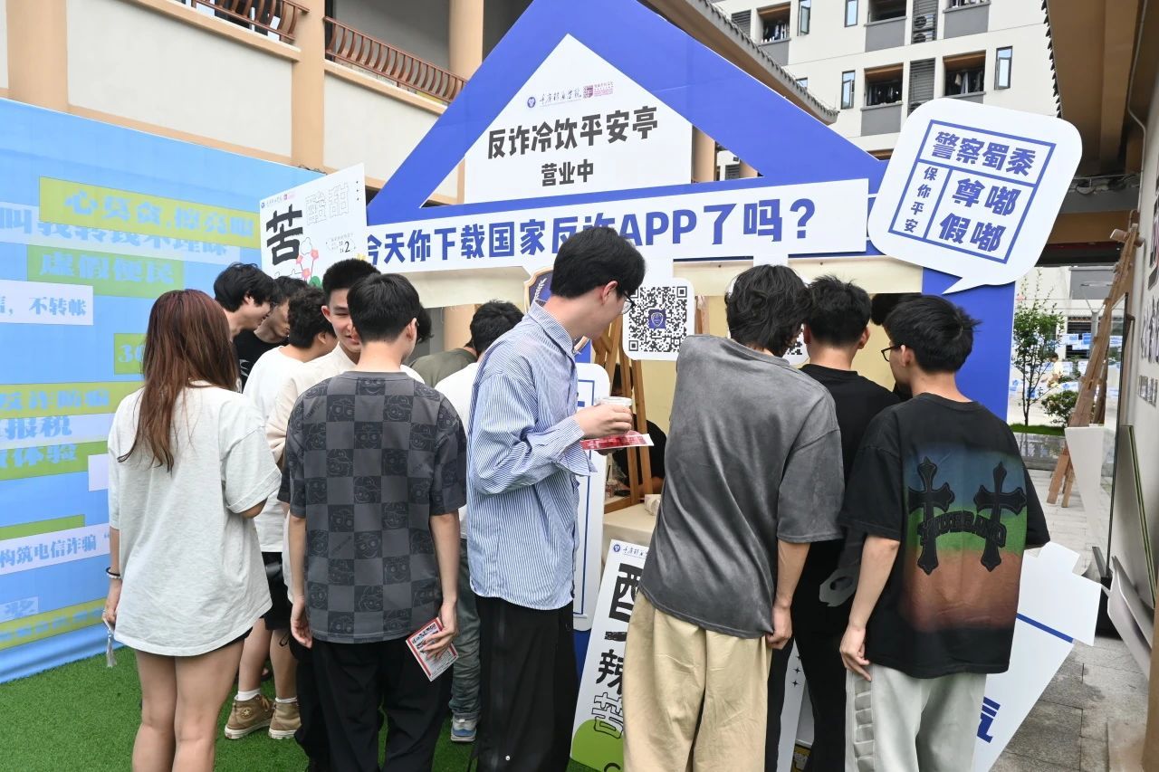 此次活动深度融合学院专业特色与学生兴趣喜好,结合当下五花八门、防不胜防的诈骗形式、诈骗典型案例、诈骗预防措施等内容,通过反诈艺术长廊、反诈短剧展演、反诈观影、反诈迷宫、反诈冷饮、反诈讲座等20多个反诈互动形式,带领广大师生沉浸式感受和体验诈骗套路,提高诈骗辨识能力和自我防范意识。