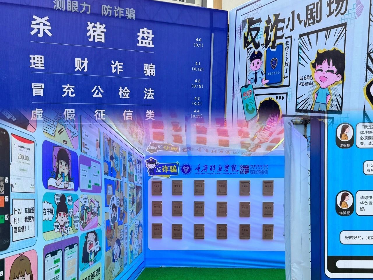 本次反诈研究所的成功落地,我在学院和老师的指导下,和我的干事们完成了所有的物料设计,过程很辛苦,但活动现场的呈现很完美。作为一名大二的学生能够有机会参与设计这样一场大型活动,还有机会走出校园辐射綦江本地市民,我很庆幸读了移通,人生无憾,一切值得!