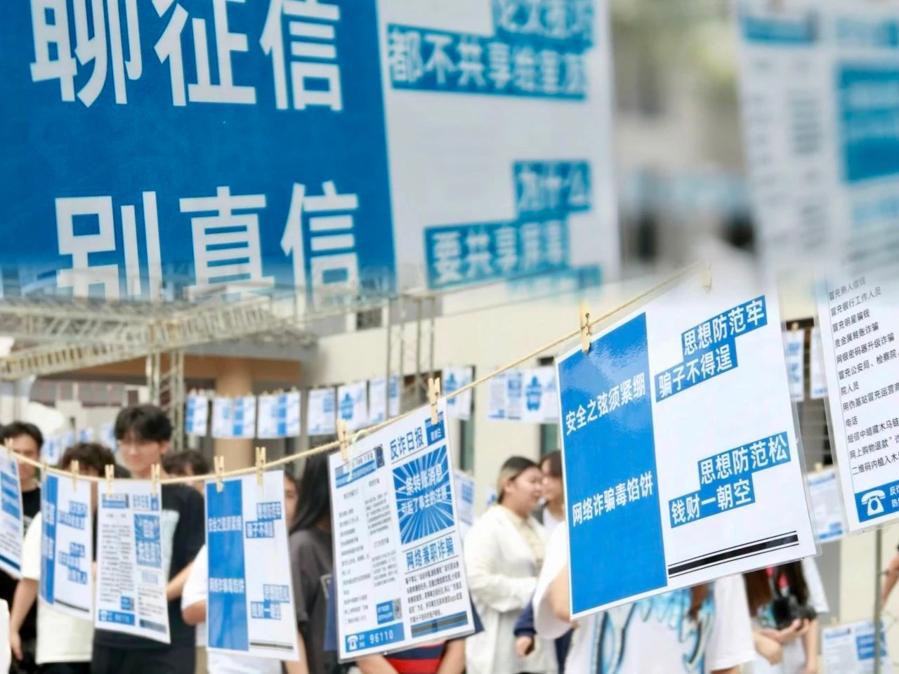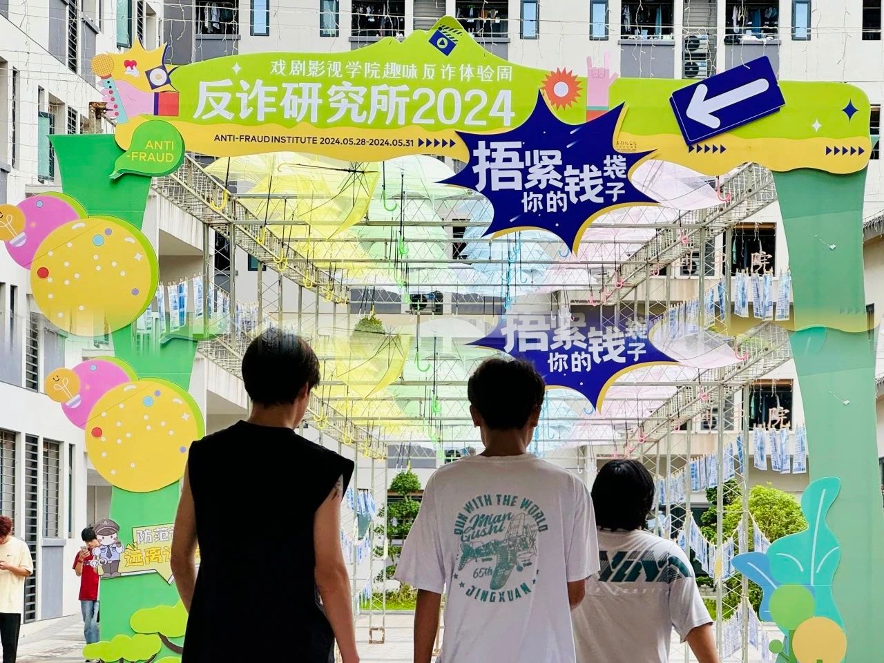 活动现场从一条独具艺术气息的多巴胺反诈长廊开始,400张图文并茂的反诈日报、反诈警示牌引人深思,吸引广大师生在长廊驻足观看打卡,争做反诈防诈“代言人”。