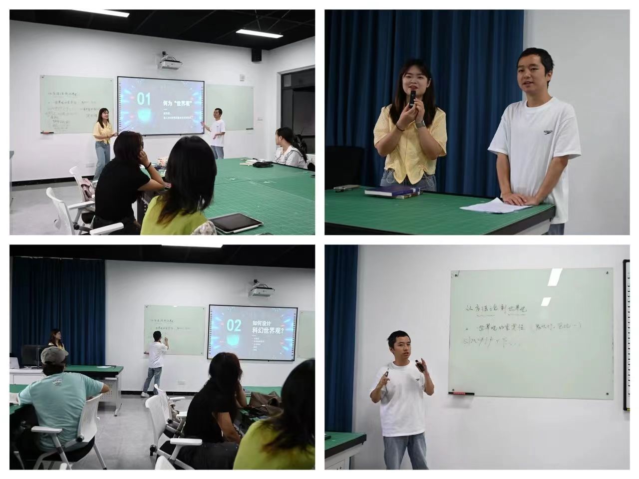 AIGC时代下,人类的想象力能打败人工智能吗?未来我们还用自己写剧本吗?为了拓宽学生的跨学科视野,激发学生想象力和创造力,6月7日,戏剧影视学院的杨永欣老师与瀛洲科幻学院的刘玲炜老师在贤者楼506教室,以“从方法论到世界观:以文字构建宇宙”为题,为戏剧影视文学专业的同学们带来了一场“脑洞大开”的双师课堂。