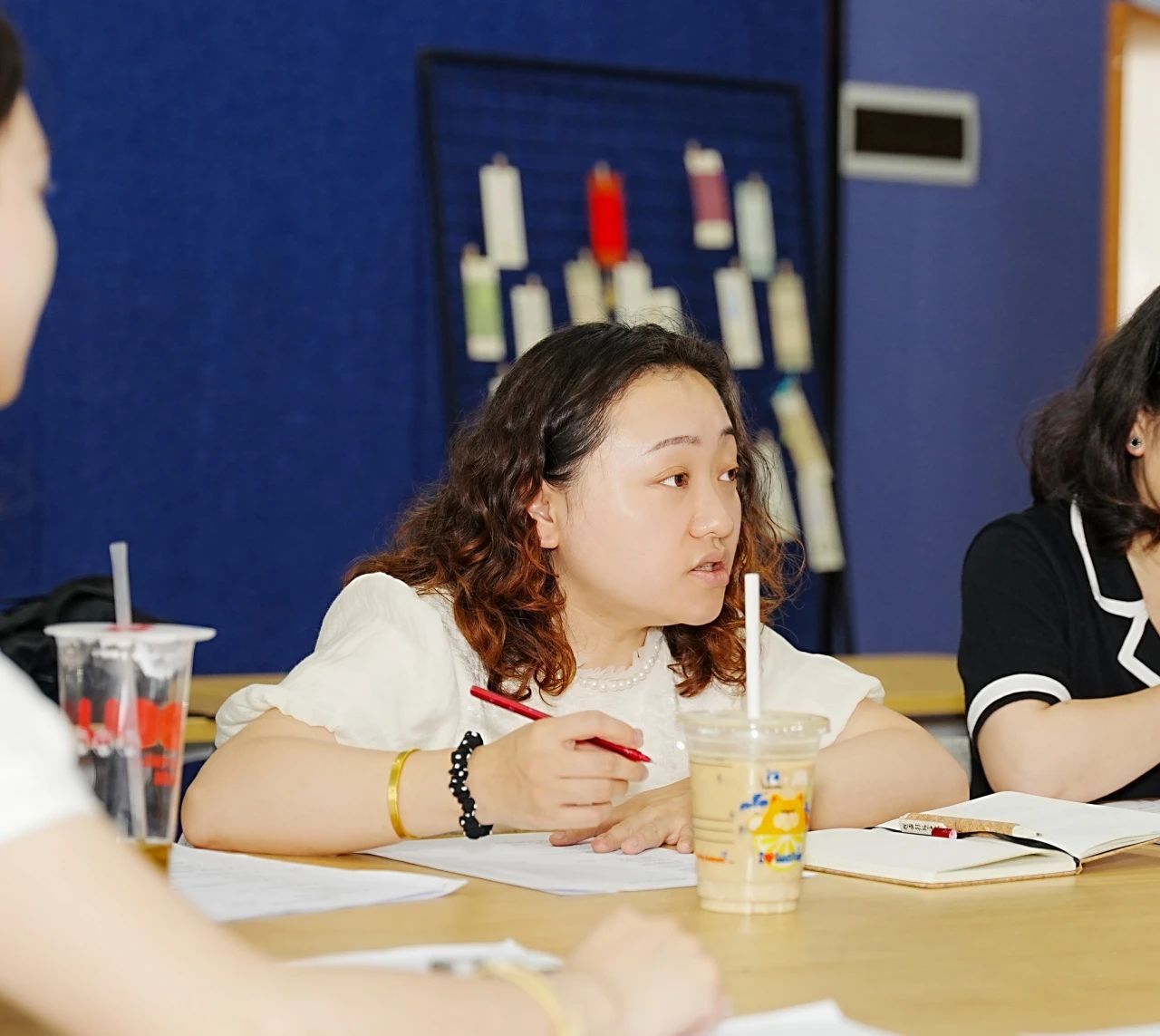 综合艺术教研室主任袁梦茹介绍了当前线上与线下课程的现状及其各自的优势。线上课程可以打破时间和空间的限制,学生通过平台自主安排学习进度和时间,学习该课程的基础知识;而线下课程则通过真实的操作环境和实践机会来提升学生的实践能力和应用水平。通过将两者有机结合,发挥各自优势,可以提升整体教学效果。