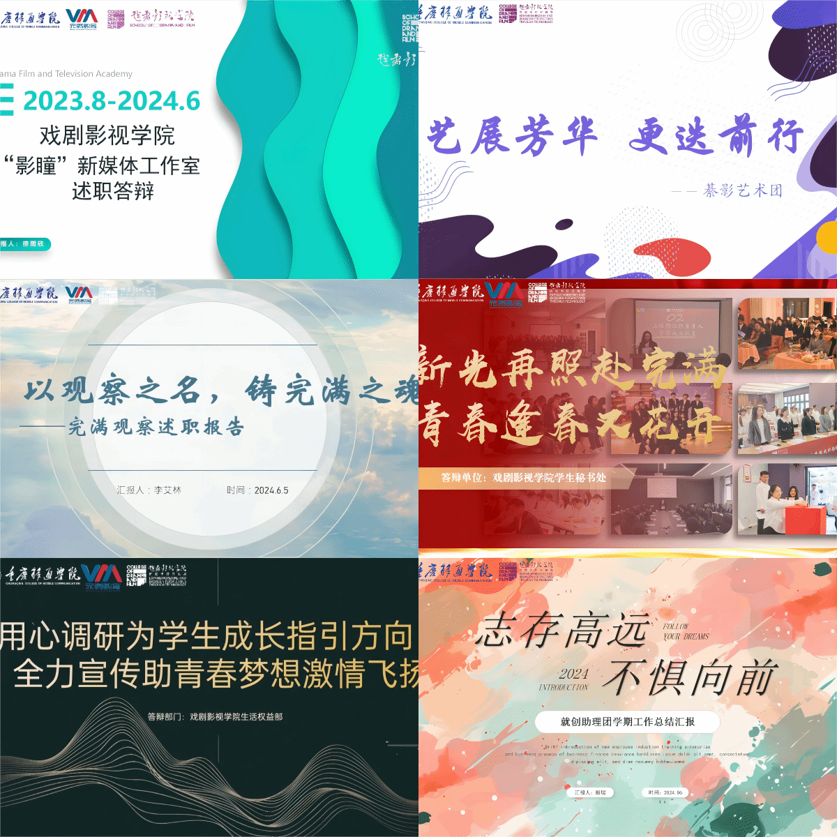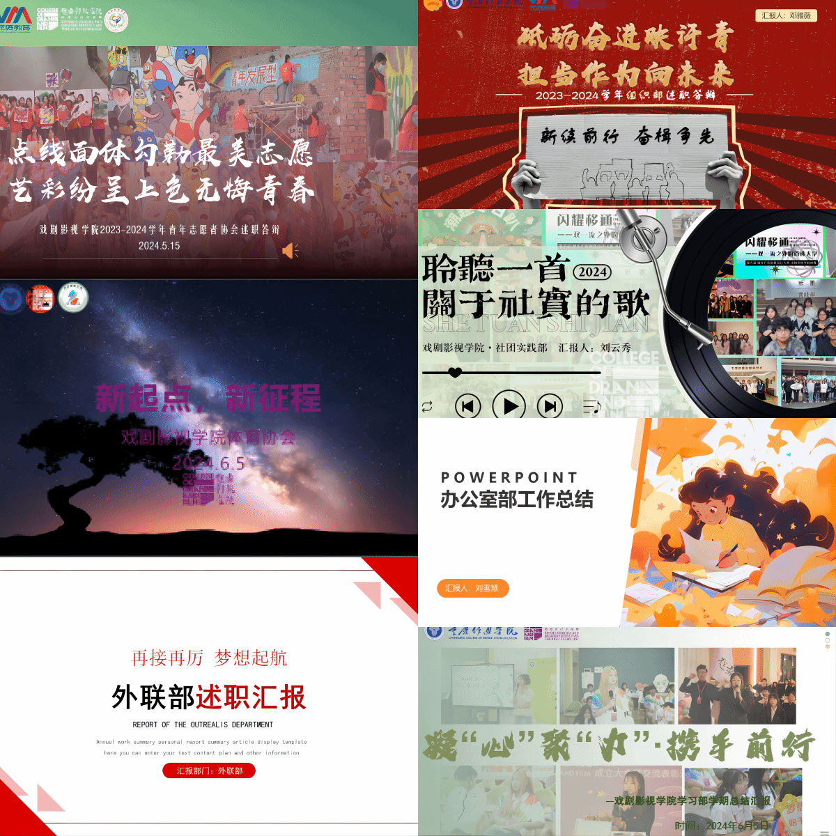 本次述职不仅只是各部门工作的呈现,而是一次部门交流、思想碰撞的平台,更是对未来工作的规划展望。各部门的述职答辩有效激发了大家的工作热情、对部门的归属感和对学院学生组织的认同感。在新的学年里,学生组织将继续怀揣梦想、追寻希望、奋楫扬帆,让无悔的青春在学生组织中闪闪发光,让每一抹耀眼的“戏影色彩”,都成为了戏娃人生中最美好的回忆。