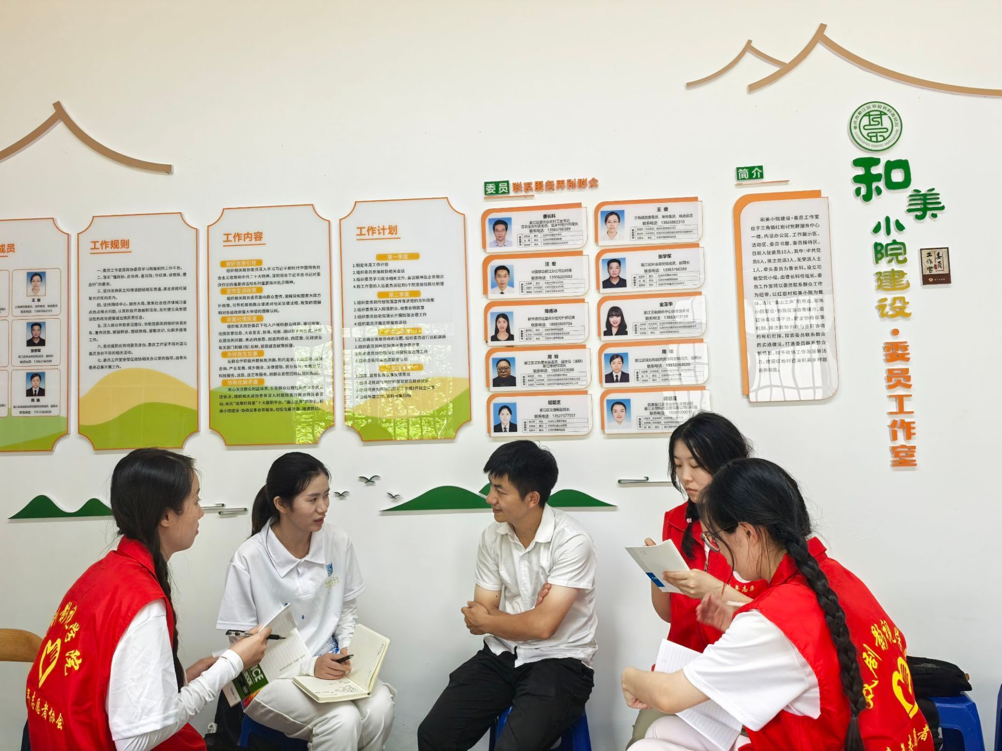 志愿者们首先在红岩村村委会门口集合,由地质文化小组负责人汇报今天的具体行程安排,并对团队成员进行明确的任务分工,确保行程顺利实行。在会议上,指导老师和志愿者与书记具体沟通了接下来几天的活动细节,确保活动顺利进行。