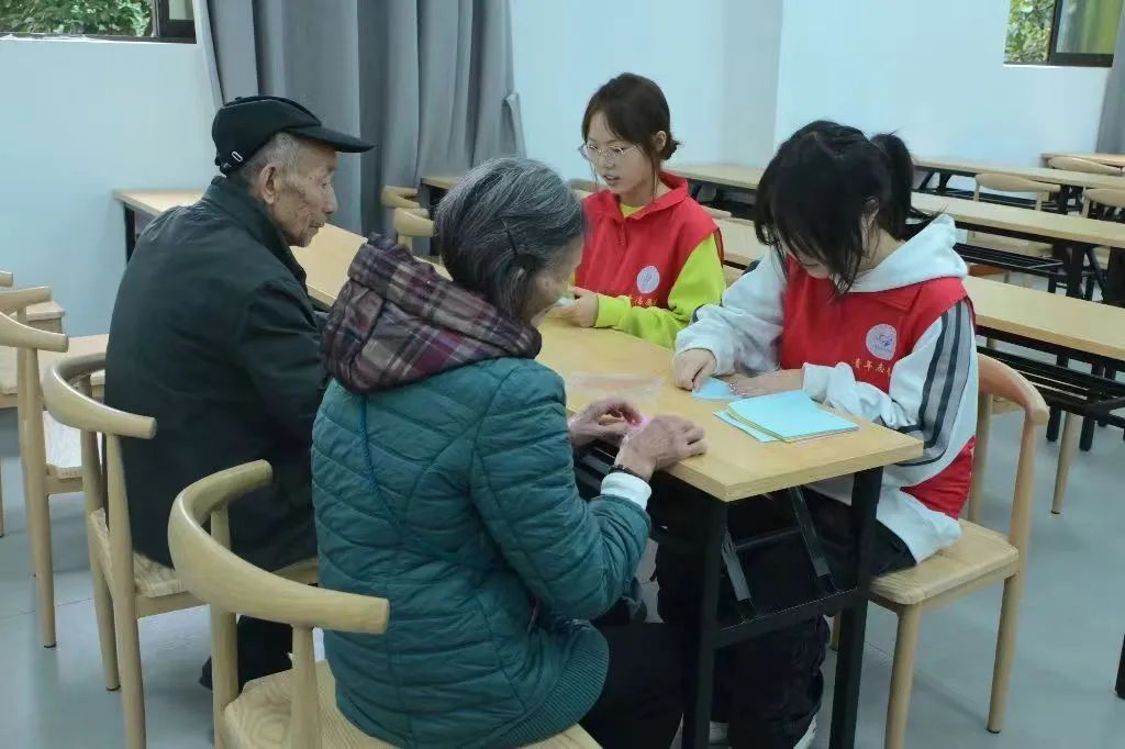 表演结束后,活动的现场并未因此而沉寂,反而迎来了另一番热闹而温馨的景象。在精心设置的娱乐摊位上,志愿者们与老人们欢聚一堂,共同享受着重阳节的欢乐时光。在手工折纸活动中,一张张彩色的纸张,在志愿者与老人们灵巧的双手中,渐渐变成了形态各异、寓意美好的作品。在绘画区,志愿者们正用他们的画笔,为老人们绘制着一幅幅情意满满的画卷。整个活动现场,充满了欢声笑语与温馨感动。