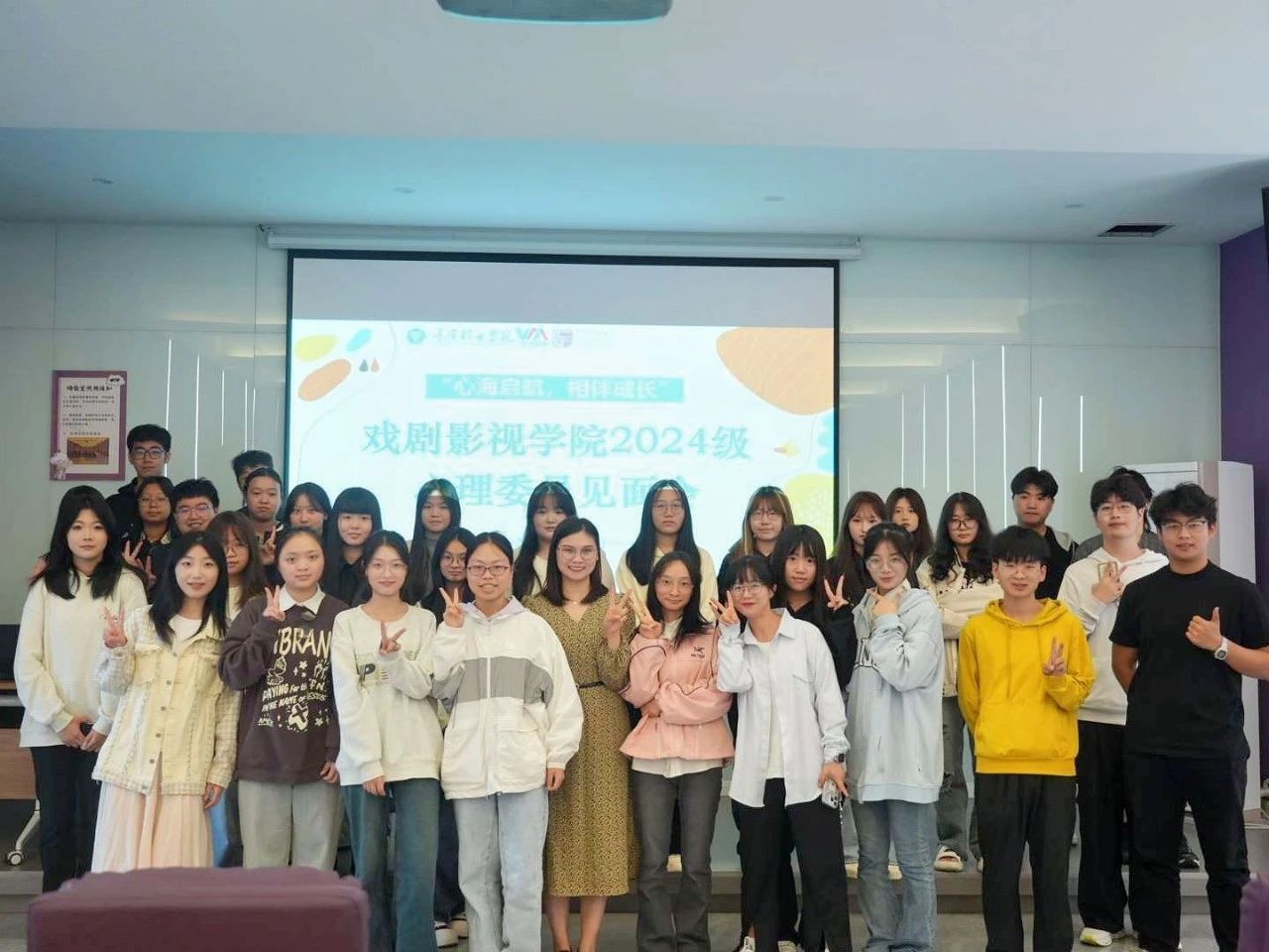 新学期,新面貌,心海启航,相伴成长,为了提升心理委员的专业素养,促进各班同学的心理健康,提高学院心理健康水平,营造良好健康的学院氛围。同时让身心发展部的新干事们尽快熟悉部门,了解部门工作任务安排,增进部门干事间的感情,以确保后续的工作正常开展,戏剧影视学院身心发展部于2024年10月10日中午12:40在观云书院秋分多功能活动室举办了戏剧影视学院2024级心理委员及部门成员的培训见面会。此次见面会邀请到戏剧影视学院学工办主任曾玉娇、戏剧影视学院身心发展部指导老师林倩、2024级各班心理委员和以及身心发展部全体成员共同参与。
