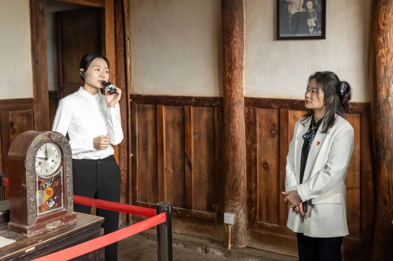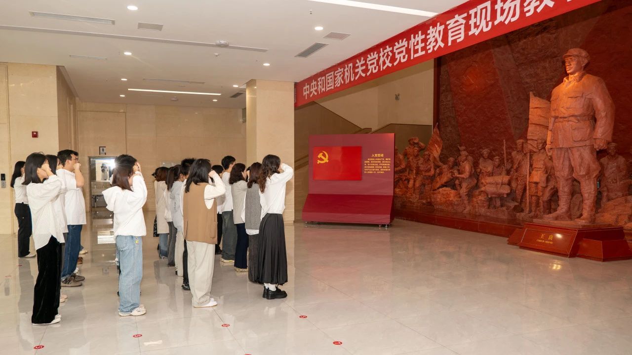 午后,参与研学的师生在校门口统一集合,带着对革命英雄的缅怀与对历史的敬畏,踏上了前往革命先烈王良军长故居的研学之旅。进入王良军长纪念馆后,迎面而来的是王良带着一众民众斗志昂扬的群像雕塑,让在场的一众师生纷纷肃然起敬。随后,在戏剧影视学院副院长王芳教授的带领下,在场师生站成队列,面向雕塑,紧握右拳,一起重温入党誓词。铿锵有力的声音,如同穿越时光隧道的回响,彰显出新时代青年坚定的理想信念和矢志不渝的初心使命。