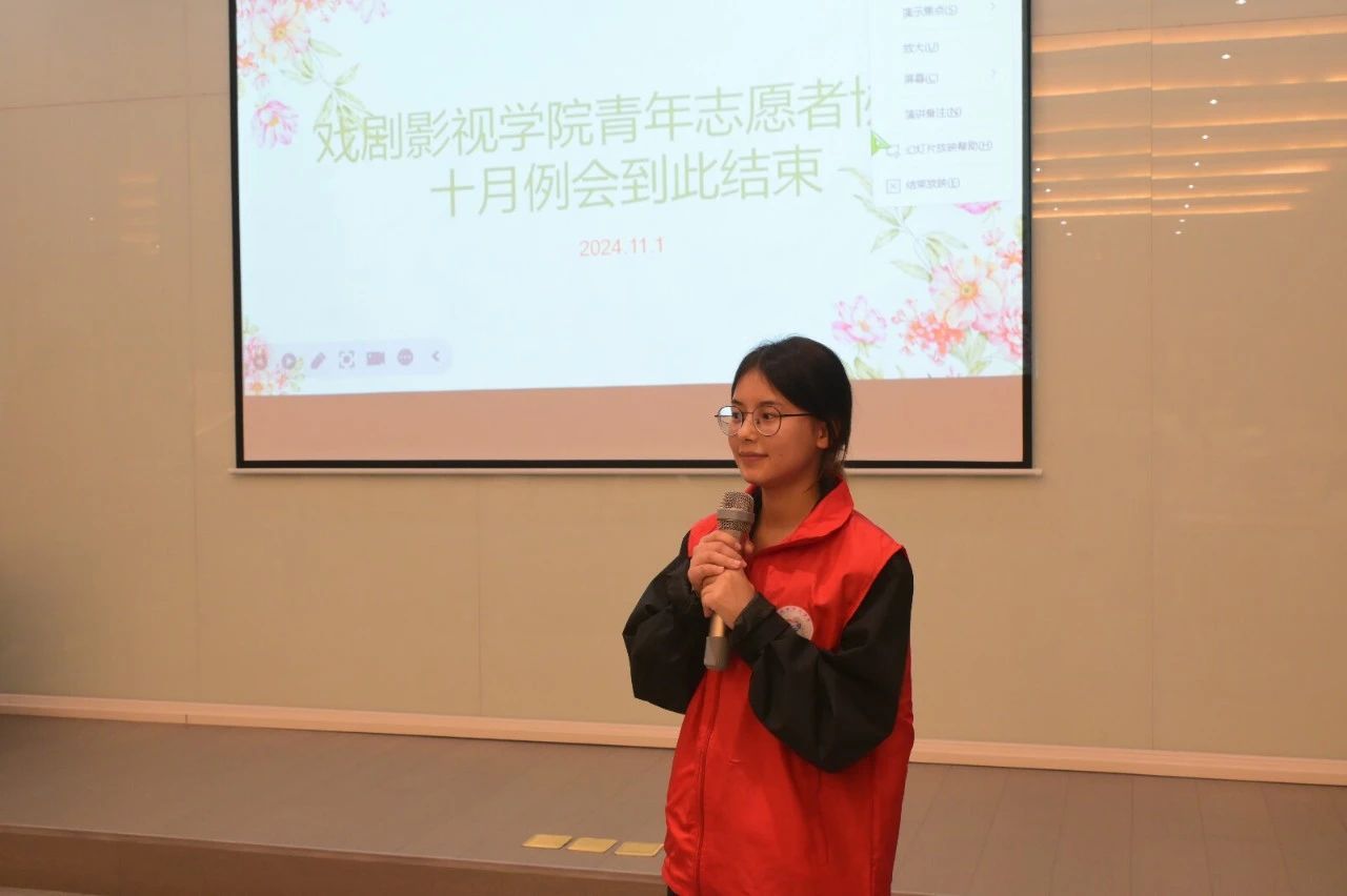 为了进一步加强青协的组织纪律建设、提高志愿者们的个人能力和工作素养,同时对10月的工作做出总结和反思,戏剧影视学院青年志愿者协会于2024年11月1日下午在观云书院冬至·多功能室开展11月例会,本次会议由青协部长王甄主持。