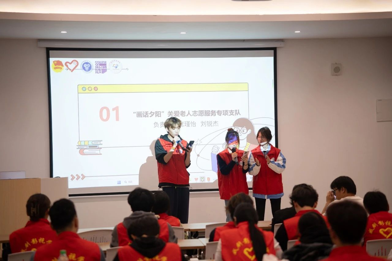 主持人刘锐杰首先代表支队全体成员对新成员的加入表示热烈欢迎,并言简意赅的对志愿支队进行了一个简单阐述,帮助新加入的志愿者们对支队有了进一步的了解。紧接着各支队负责人上台进行自我介绍,并对各自支队的服务对象和工作概况进行了详细的讲解。向新成员们展示支队以往举办过的活动和自身在志愿服务中的经历和感悟,他们鼓励新加入的支队成员们积极参加志愿服务活动,在一次次的实践中锻炼自己,为志愿事业添砖加瓦。