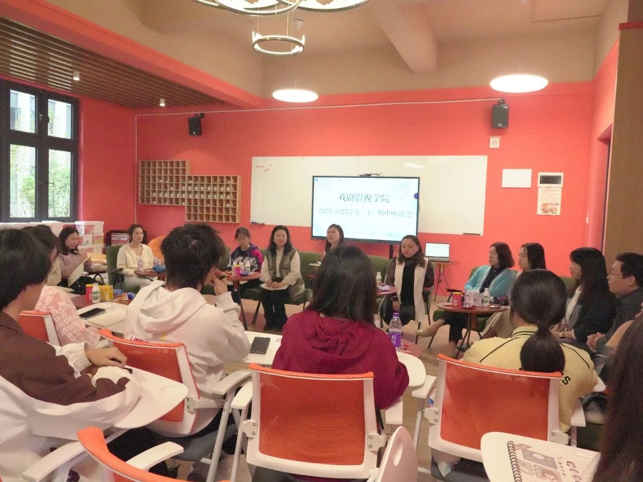 新学年,为帮助戏剧影视学院全体同学解决新学期在学习和生活上的疑惑,关心引导他们更好地适应大学生活,2024年11月4日,戏剧影视学院在古剑书院白虹·半间闲室开展了2024-2025学年第1学期期中座谈会。参与本次座谈会的除了学院领导、专任老师和辅导员们,还有各职能部门教师代表,他们是:基建后勤处江蓉主任、教务处胡珂婧老师、学生处程荧老师、图书馆刘文文老师,以及学院5个专业的学生代表,师生30余人共聚一堂,共同讨论同学们日常学习生活中所关注的问题。