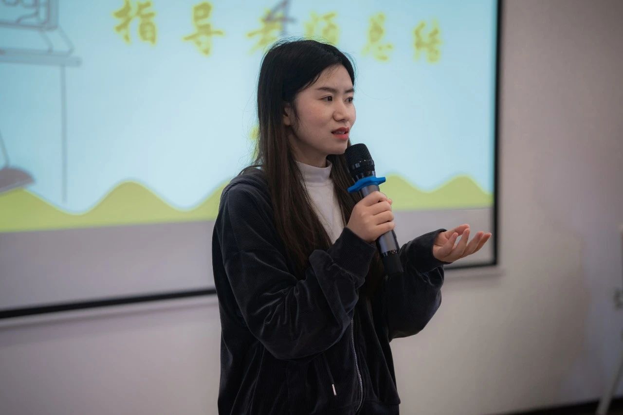 在两位干部精彩的发言后,由指导老师李梦雪老师发表讲话,她提出志愿服务项目的孵化要明确思路,每场活动的背后要多思考活动策划的可实施性和可复制性,形成系列活动,逐步打造出自己的特色,形成可持续、可发展的内容,自然而然就可以打造出相关的项目,她鼓励同学们发挥创新意识,将自己的专业所学与志愿活动相结合,也要积极走出校园,聚焦社会热点,拓展志愿服务活动内容,提升志愿服务质量。