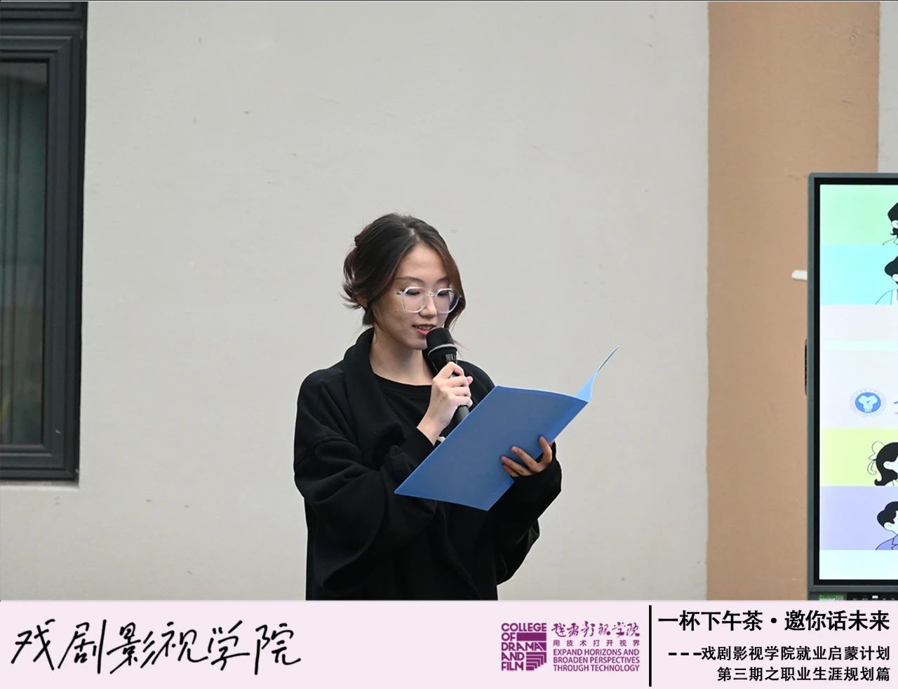 大学生活丰富美好又多彩绚丽,2024级新同学进校已有两个月,在体验大学全新生活方式的过程中,新鲜感褪去之后的迷茫感也接踵而来。为帮助戏影学子制定正确的学习规划,引导他们学会有意识地把握自己的人生方向,及早关注个人成长与发展,2024年11月6日,戏剧影视学院“一杯下午茶·邀你话未来”就业启蒙计划第3期在古剑书院得意·中庭成功举办,本次活动荣幸邀请到了重庆移通学院就创导师库导师、全国首届职业生涯规划大赛铜奖得主罗德康、戏剧影视学院学工办主任曾玉娇、辅导员廖炳屹3位老师,戏影就创助理团携手50名新生戏娃围坐一堂,共话未来。