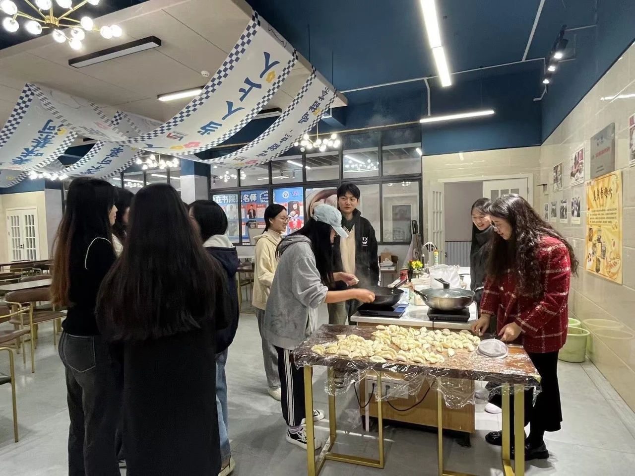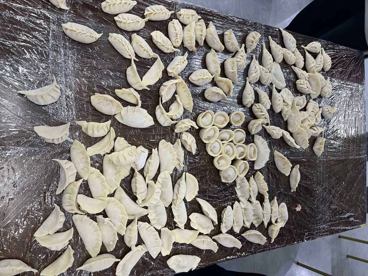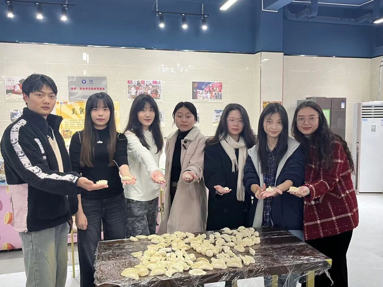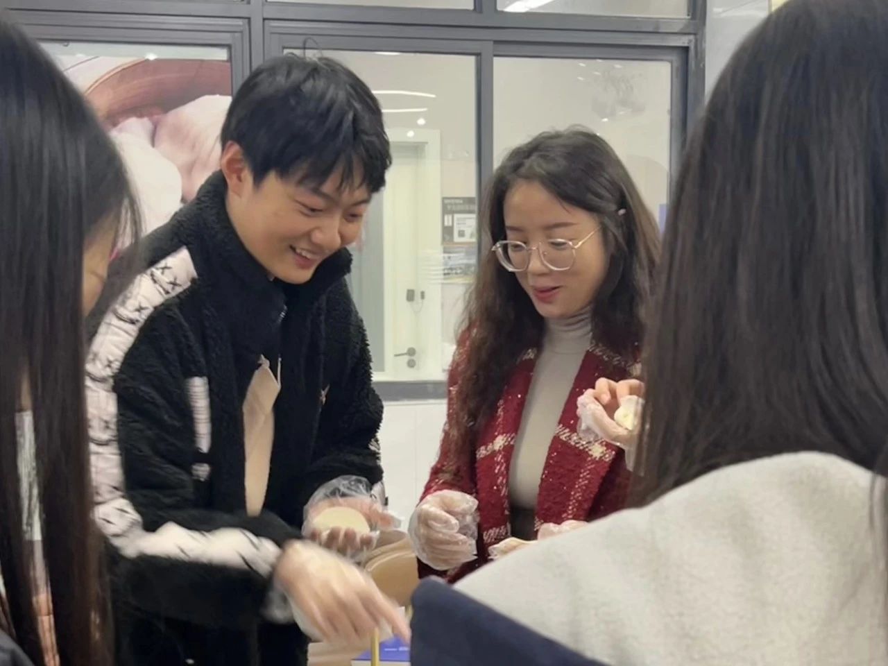 活动在轻松愉快的氛围中拉开序幕,张焰琳老师与林西康老师率先示范,他们亲切的话语以及娴熟的手法,在刹那间便激发了同学们高涨的参与热情。师生们纷纷卷起衣袖,变身“饺子匠人”,在一片欢声笑语中开始了包饺子的技艺学习。饺子,这一承载着中华民族团圆与和谐美好寓意的美食,此刻成为了连接师生情感的桥梁。大家一边动手实践,一边交流着各自家乡包饺子的习俗与趣事,空气中弥漫着的不仅是饺子的香气,更有师生间深厚的情谊和温暖的记忆。