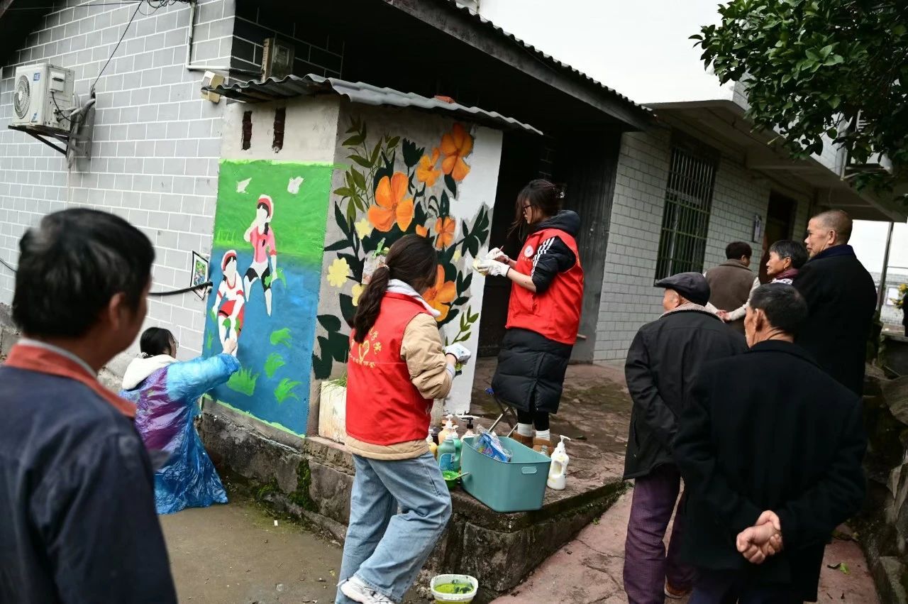 綦江区东溪镇蕴藏着深厚的文化底蕴与丰富的人文资源,在致力于和美乡村建设的征程中,充分挖掘地方文化特色成为了至关重要的一环。为助力乡村振兴战略的实施,推动乡村文化繁荣与生态宜居建设协同发展,在綦江区团委与东溪镇政府的全力支持下,戏剧影视学院青年志愿者协会“益术家”支队于2024年11月23-24日在綦江区东溪镇开展了“墙绘添彩乡野田间・共绘乡村美丽画卷”主题志愿活动。此次活动不仅致力于美化乡村环境,更着眼于以艺术为媒介,重塑乡村魅力,促进乡村物质文明与精神文明的双提升,为和美乡村建设注入青春活力与文化内涵,让古老的乡村在新时代焕发出独特的光彩,实现乡村可持续发展与和谐共生的美好愿景。