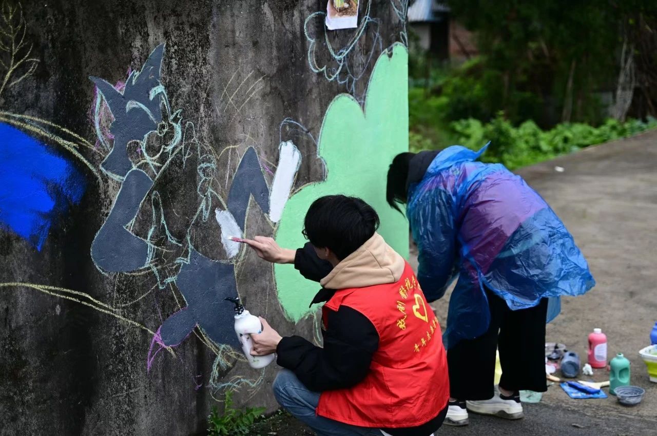 以美术为媒介,借墙绘涂鸦以装点。本次活动不仅鲜明展现了传播乡土文化与美化乡村环境的双重意蕴,更是戏影学子运用专业所学扮靓乡村、回馈社会,为和美乡村建设添彩增光的生动实践。展望未来,"益"术家支队将把艺术的展示平台拓展至乡村,促使文化艺术资源在乡村落地生根、开花结果。将更多精美的艺术作品与和美乡村建设的宏伟蓝图交相辉映,共同绘制出一幅幅和谐美好画卷。