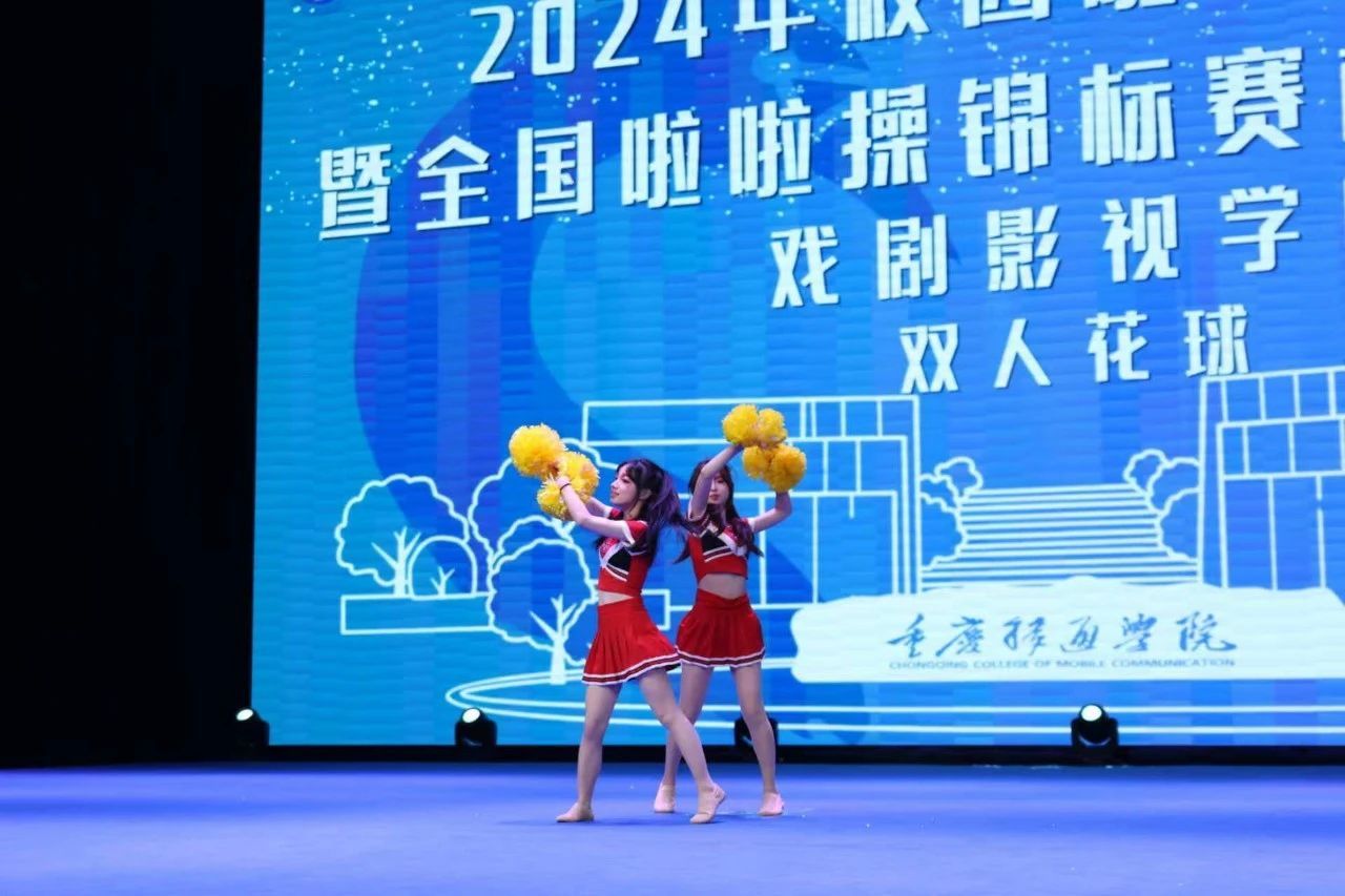 率先出场的是戏剧影视学院双人花球组合,蔡佳新和王韩身着统一且富有活力的服装,以饱满的热情和自信的笑容亮相于观众面前。在欢快动感的音乐节奏中,他们轻盈起舞,每一个动作都凝聚着力量与美感,瞬间点燃了现场的气氛。