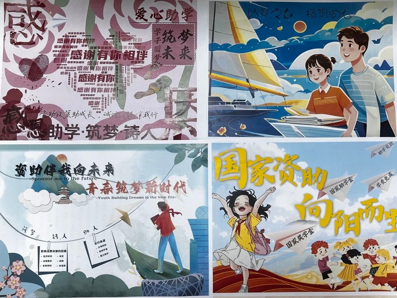 为深入贯彻落实资助育人理念,进一步丰富资助育人工作内涵,激发学生的创作热情和创新精神,戏剧影视学院于2024年11月精心举办了一场以“以爱之名,扬帆向光”为主题的资助主题创作活动。此次活动为受助学生们提供了一个独特的平台,鼓励他们以艺术创作的形式,通过资助主题海报、手抄报、原创诗歌、小说、书法等多种形式深入挖掘资助政策背后的温暖故事,抒发内心深处的感恩之情,展现资助育人的深刻内涵,在校园内掀起了一股创意与温情交织的热潮。本次主题创作共有180多名同学参与其中,最终产出各类作品达160多件,其中手抄报作品共计37件,资助主题海报作品有53件,诗歌作品有30多份,小说作品38篇,书法作品3件,同学们充分展现资助政策、感恩之情以及资助育人的深刻内涵,让这些原本抽象的内容变得鲜活且具体起来。