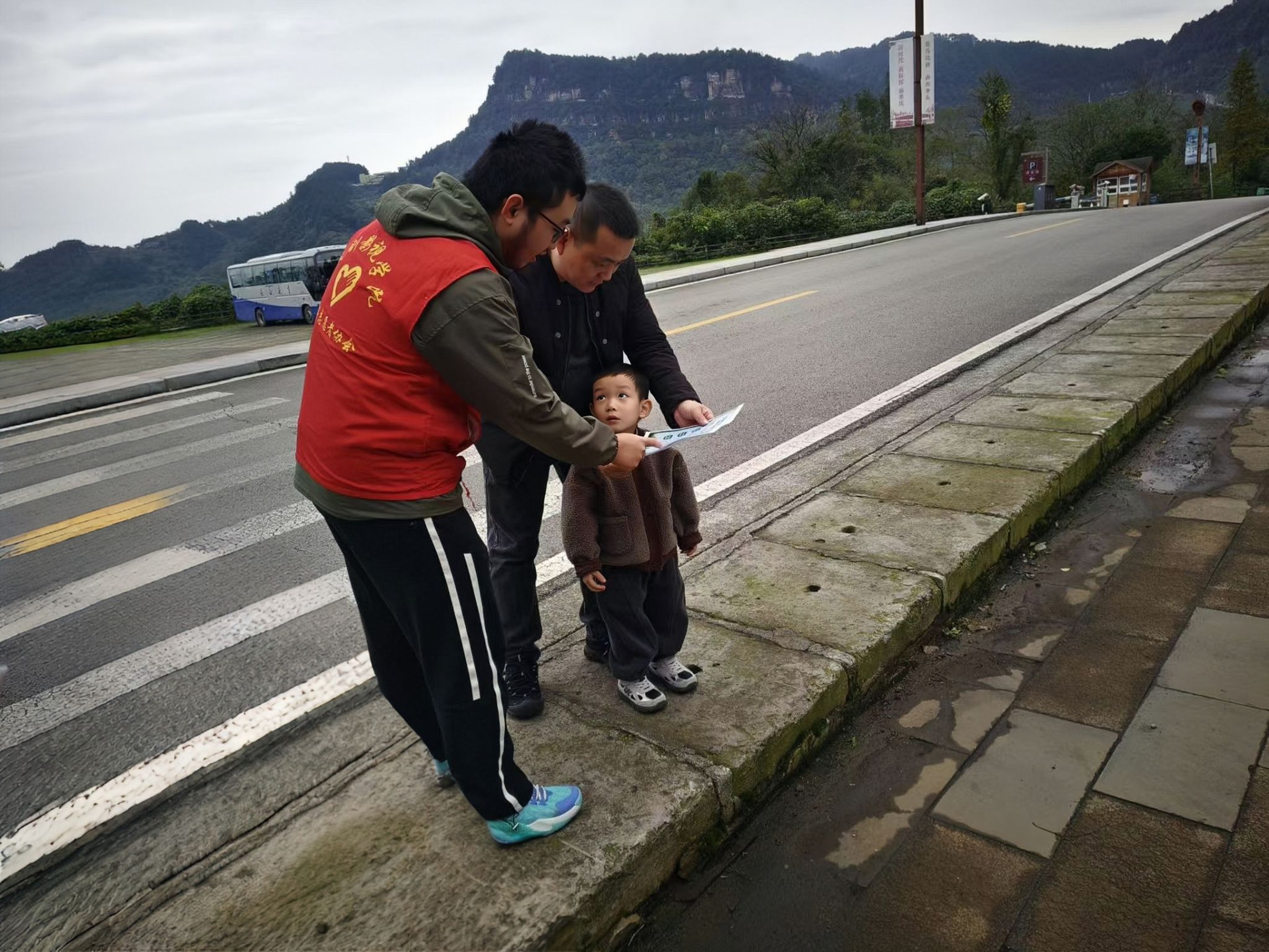 与此同时,另外一部分同学扮演起了环保宣传者,向游客们发放环保知识的宣传单,将我们所讲的环保知识传递给游客们;分享本地景区的垃圾量,说明烟头、食品包装等的危害;演示垃圾分类,让游客模拟投放;呼吁游客们践行环保行动,传递环保理恋,用青春热情感染游客守护景区生态。