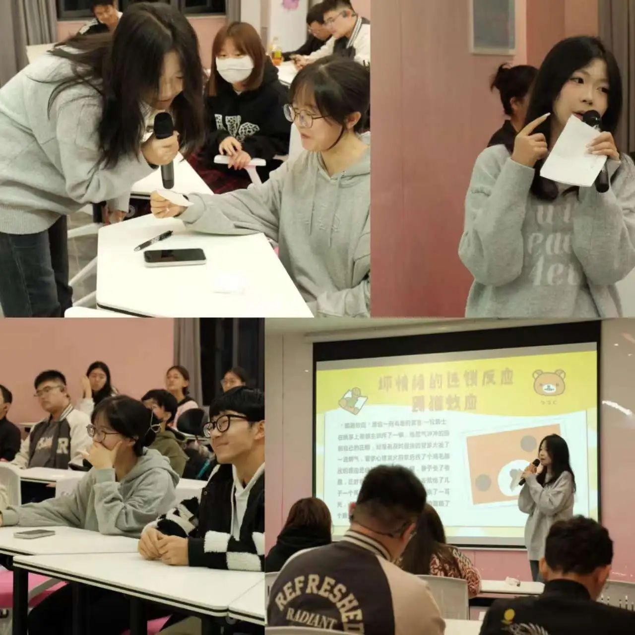 为引导同学们积极主动地关注自身健康发展,此次班会采用新颖的游戏方式,有效拉近老师与同学间的距离,营造良好的心理沟通氛围。在“同甘共苦”小游戏环节,同学们围坐一圈,依次分享各自经历的情绪化事件。这一过程运用了情绪表达与倾诉的心理机制,让同学们将内心压抑的情绪压力得到初步宣泄,同时也促进了彼此间的共情理解力,增强了团体凝聚力。随后的“emoji猜心情”心理游戏更是趣味十足。通过展示各类emoji表情让同学们猜测其对应的心情,进而引出坏情绪带来的连锁反应——踢猫效应。这涉及到情绪传染与情绪扩散的专业知识,使同学们深刻认识到负面情绪若不加以控制,可能会在人际间产生不良影响。接着,以“沙漠中的半瓶水”这一典型案例引入情绪ABC理论。借助具体情境分析,同学们清晰了解到不同的信念(B)会对同一事件(A)产生不同的结果(C),从而明白如何运用合理信念来对待消极情绪,学会积极调整认知,享受当下生活的乐趣。正如“追风赶月莫停留,平芜尽处是春山”所传达的,大学生活虽充满未知,但应保持乐观心态,接纳一切,为自身心理健康发展而积极行动。