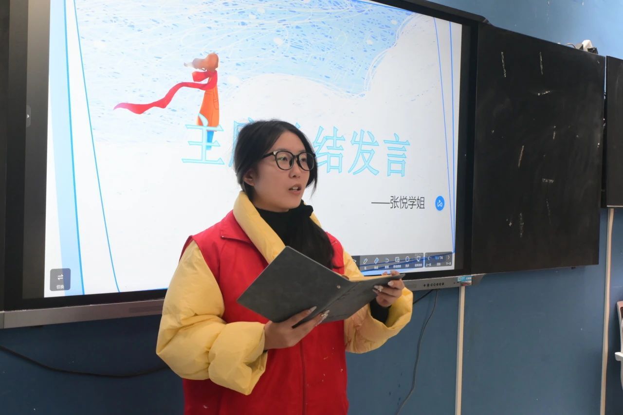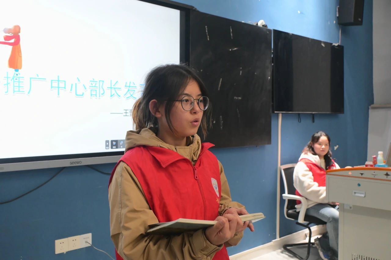 紧接着,青协主席张悦简单总结了11月的工作,结合各部门的汇报,规划12月任务的同时点明了优青标准,明确了接下来的目标。她还提出拓展志愿服务领域、打造精品项目的目标,必须要活动实践部丰富活动形式、宣传推广中心明确周报月报、综合行政中心夯实团队协作根基,项目孵化中心推进项目发展,为下学期的活动开展奠定基础。