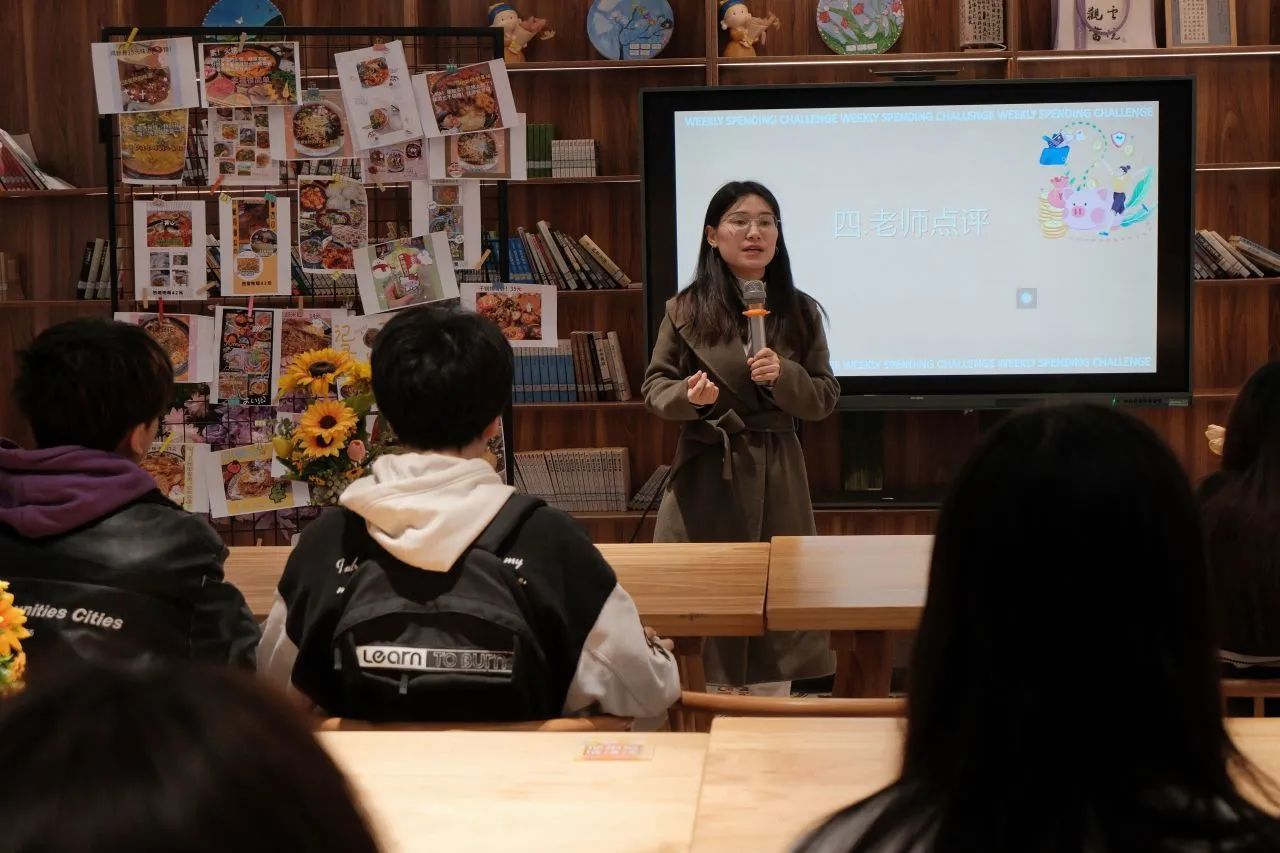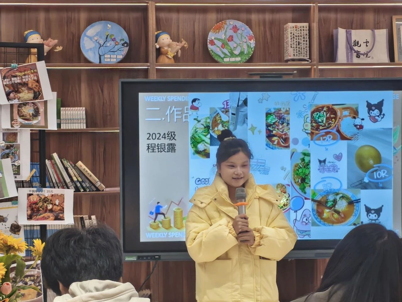 活动尾声,邓艳老师对本次活动进行了总结与点评,她高度赞扬了参与者的创意与热情,并表示此次活动不仅有助于培养同学们的节约意识,还能让大家在分享中发现更多生活中的美好。邓老师还给予了制作vlog的同学们一些宝贵的建议,鼓励他们继续发挥创意,用镜头记录生活的美好。同时邓老师还特别寄语大家,希望同学们结合专业知识,通过画笔、相机等方式记录生活,感受将生活费紧紧攥在手里,合理规划生活的消费习惯。