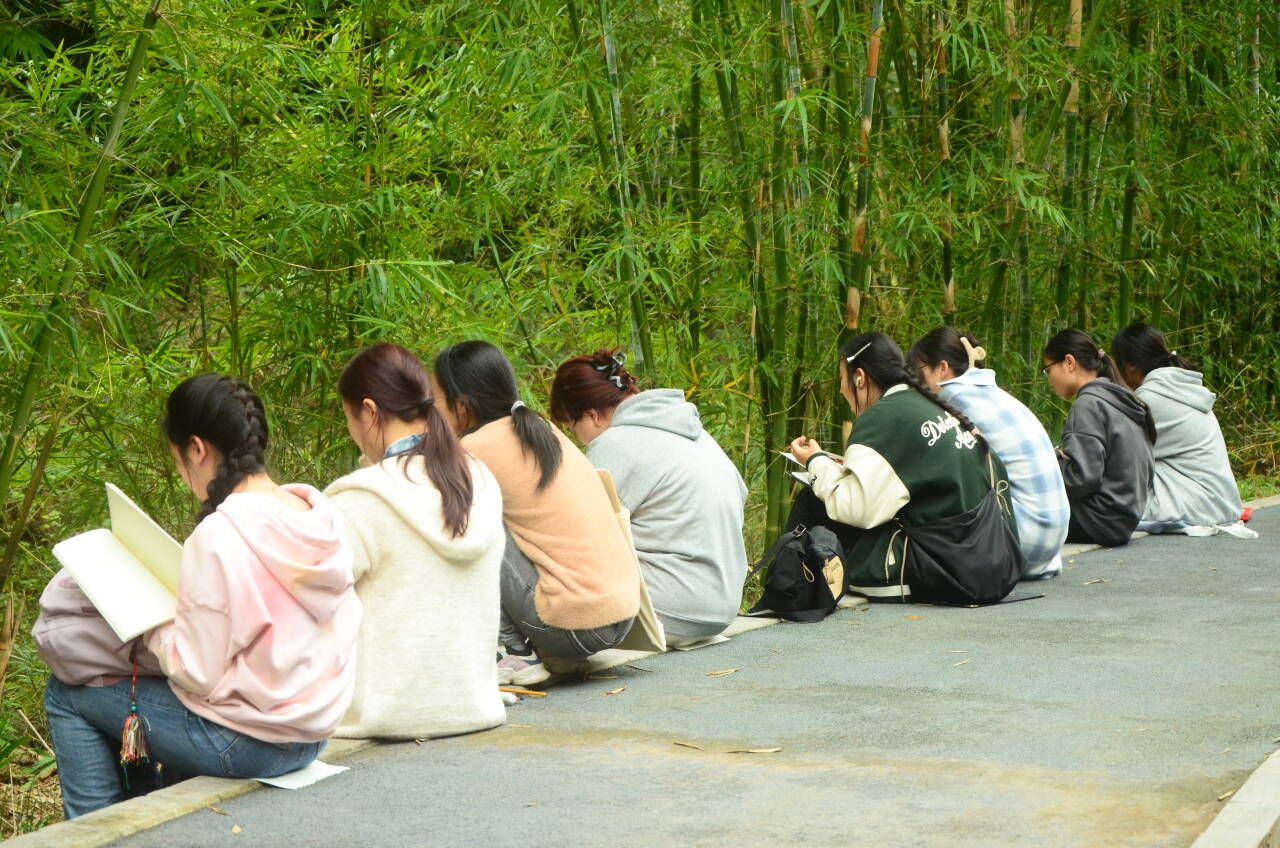 清理结束,同学们有条不紊的分散寻找各自心仪的景色完成自己的写生作品,有的独自作画,有的协作共创,各种绘画工具在同学们的手中翩翩起舞,笔尖灵动地一笔一划勾勒出了登瀛的自然风貌,为日后的专业学习巩固基础,提高了美化环境意识。