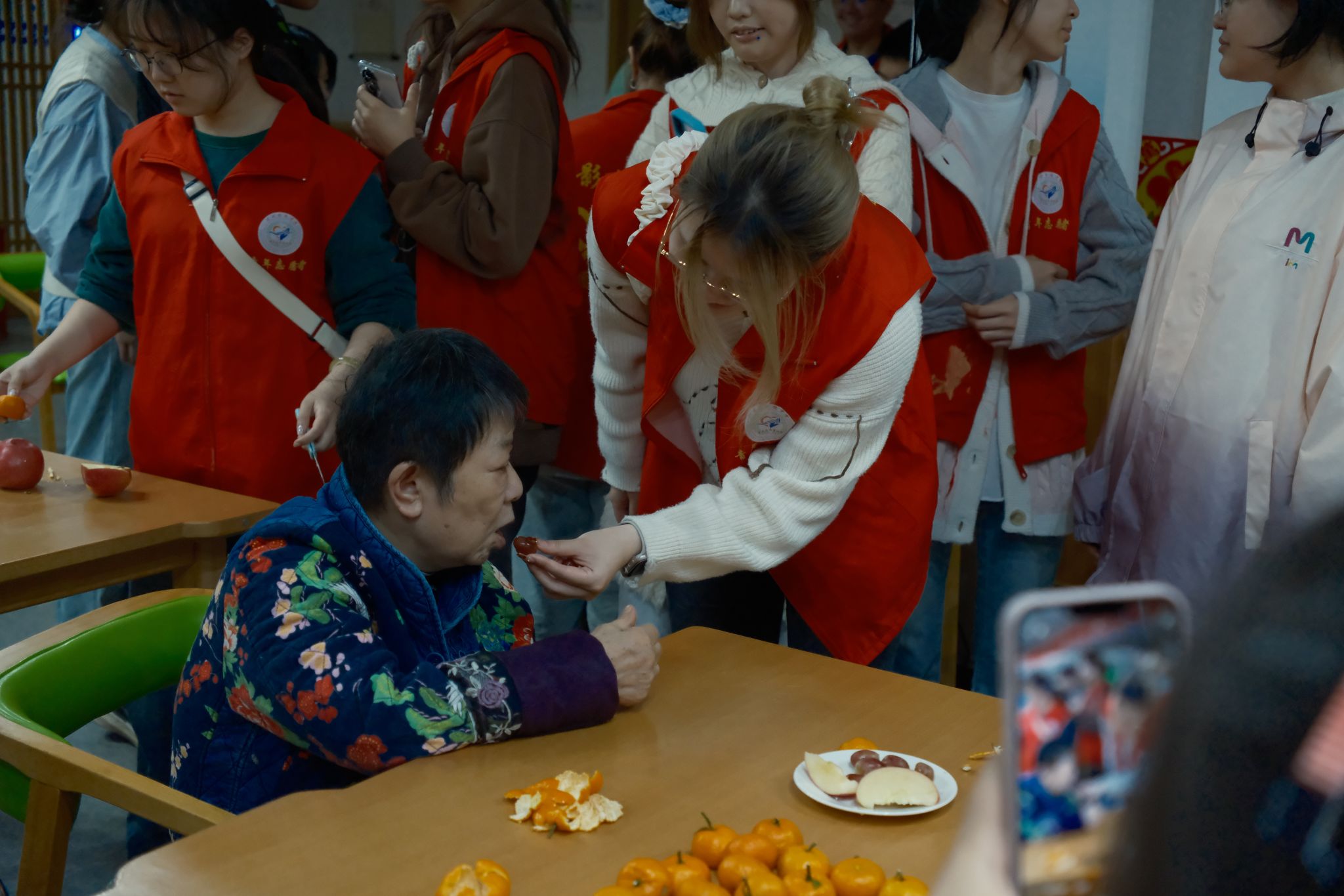 义工舞动绿椰风,生活服务组的志愿者们也忙碌在养老院的各个角落。他们将水果搬到厨房的水槽边,认真细致地清洗水果,将水果切成易于食用的小块,每一块都饱含着对老人深深的关爱。当志愿者将切好的水果端到老人面前时,老人们脸上洋溢出幸福的笑容,纷纷夸赞水果新鲜可口,更对志愿者们的贴心服务表示由衷感谢。一位老人拉着志愿者的手说道:“孩子们,你们想得太周到了,这水果吃在嘴里,甜在心里啊。”在分享水果的过程中,志愿者们还与老人们亲切交谈,倾听他们的故事和心声,敬老院里充满欢声笑语。